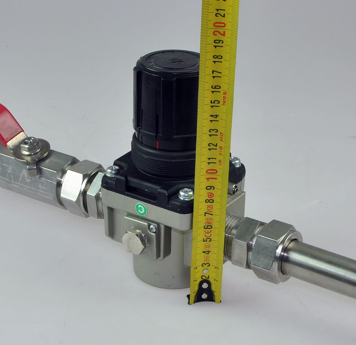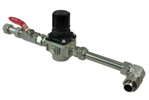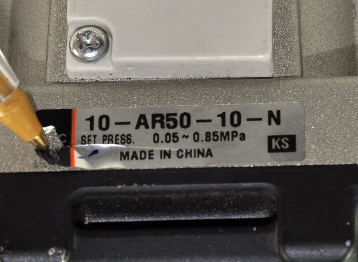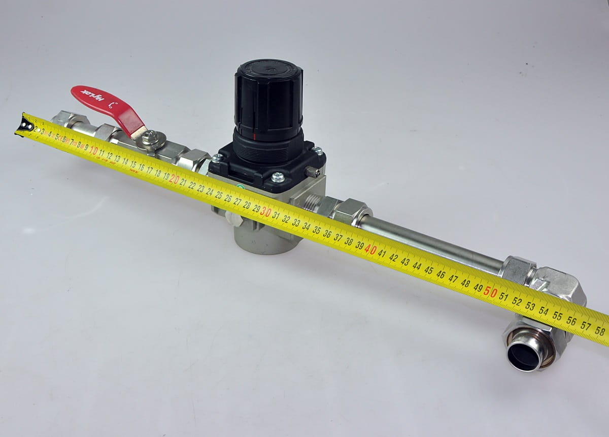 Używany, całkowicie sprawny zestaw złożony z regulatora ciśnienia firmy SMC o symbolu: 10-AR50-10-N oraz zaworu ręcznego BVH-16-T i widocznej na zdjęciach armatury.