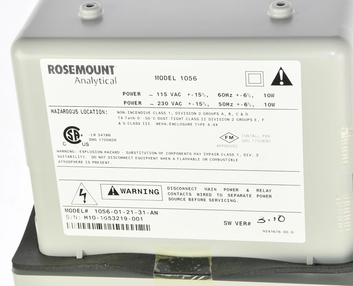 Produkt o oznaczeniu: 1056-01-21-31-AN ROSEMOUNT, produkt firmy: EMERSON. Przemysłowy analizator procesowy. Urządzenie przeznaczone do pomiaru i monitorowania parametrów cieczy w aplikacjach przemysłowych, takich jak uzdatnianie wody, przemysł chemiczny, spożywczy i farmaceutyczny.