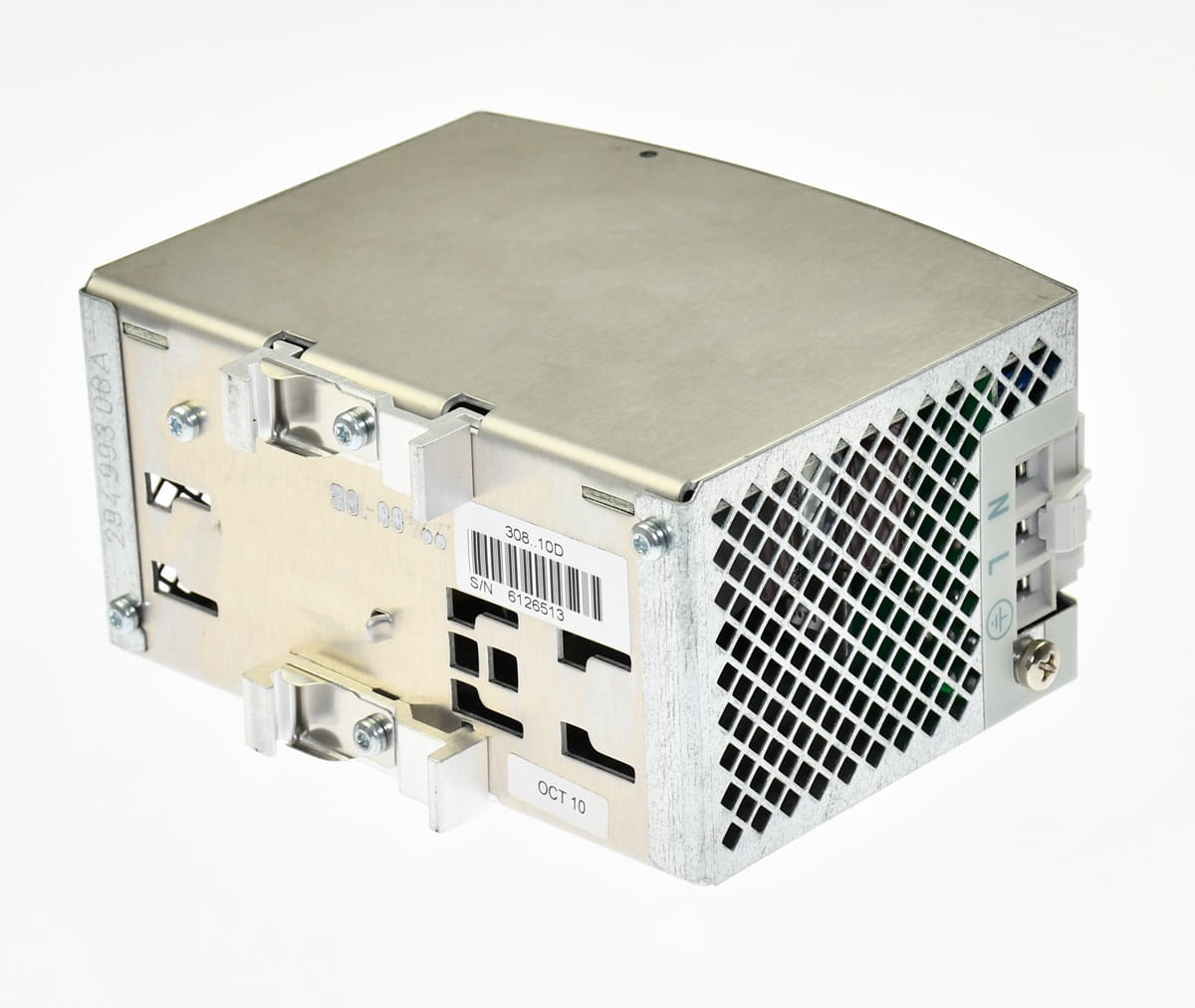 Używany, całkowicie sprawny i w idealnym stanie zasilacz impulsowy przeznaczony do montażu na szynach DIN, produkt o symbolu: 1606-XLDNET4, produkt firmy Allen-Bradley. Brak zapięcia mocującego na szynie DIN, pokazano to na zdjęciu Nr: 3.