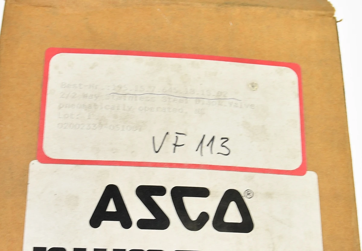 Wysokiej jakości zawór przemysłowy renomowanej marki ASCO (Emerson), model: 195.15.7.645.18. Zawór membranowy z uszczelnieniem EPDM, sterowany sprężonym powietrzem - siłownik jednostronnego działania (ze sprężyną). Przyłącza typu Tri-Clamp (Tri-Clover) - higieniczne do instalacji spożywczych, farmaceutycznych.