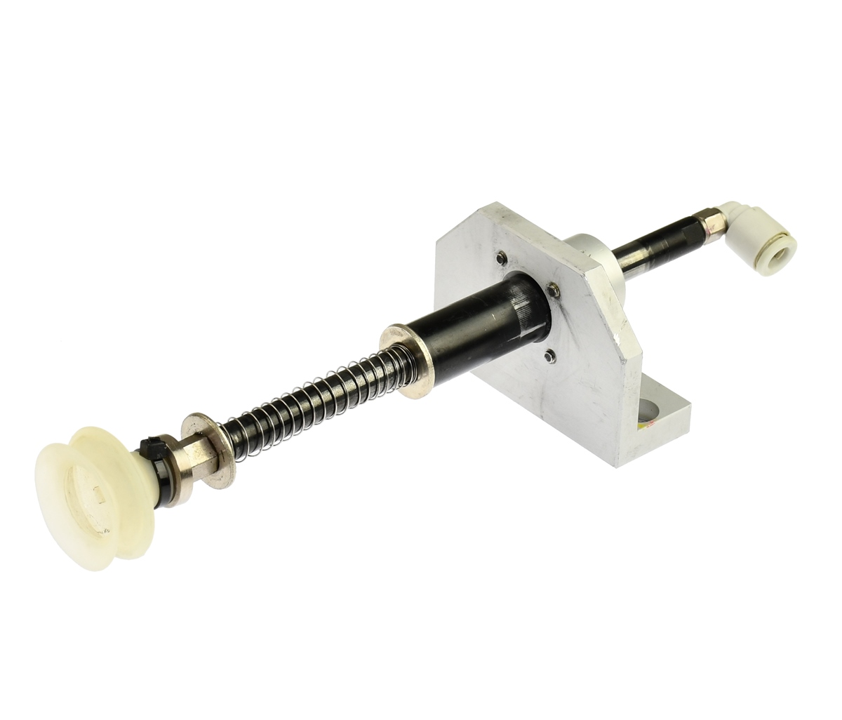 Używany moduł chwytaka podciśnieniowego z przyssawką o średnicy 26mm marki SMC, Chwytak z tuleją łożyskowaną oraz szybko złączem na przewód pneumatyczny o średnicy 6mm. W zestawie uchwyt aluminiowy. Budowa pokazana na załączonych zdjęciach. Pochodzi z demontażu sprawnych maszyn.