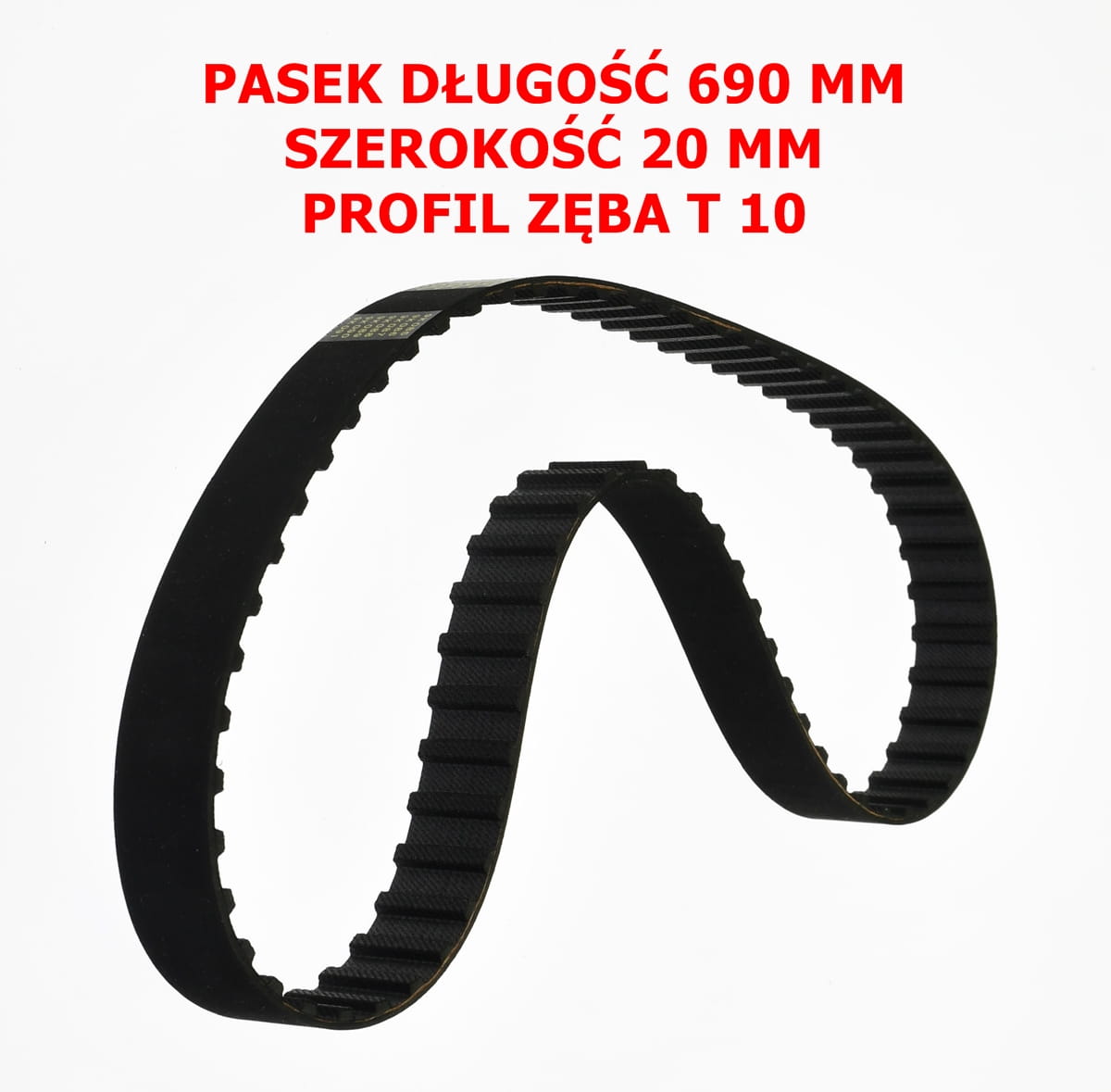 Nowy, nie używany, całkowicie sprawny uretanowy pasek zębaty o profilu zęba T10, długość 690mm, szerokość 20mm . Symbol elementu: 270L 075G-F producent CHIORINO. Pochodzi z likwidowanych zapasów magazynowych utrzymania ruchu.