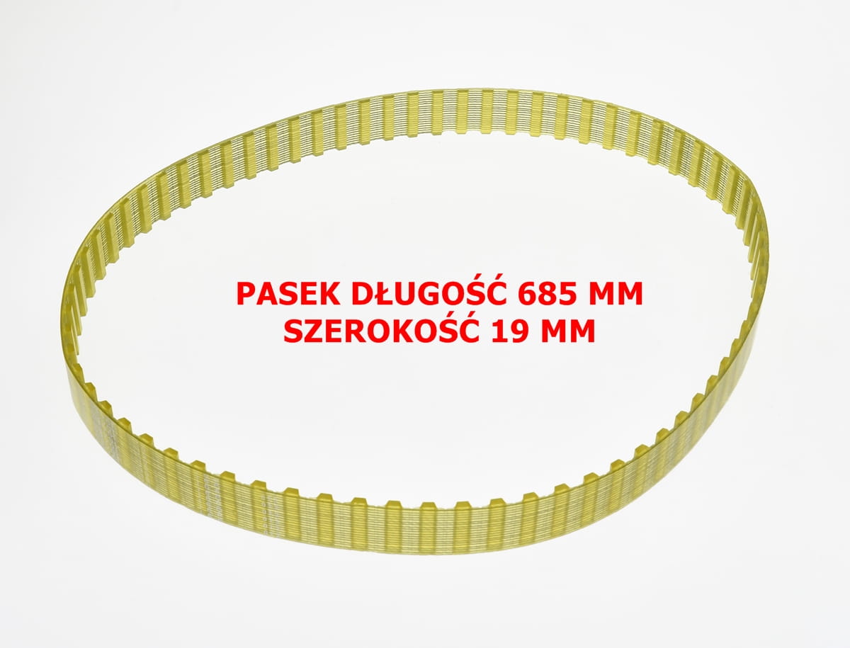 Nowy, nie używany, całkowicie sprawny uretanowy pas zębaty. Symbol elementu: 270L-I6A-013 producent CHIORINO. Szerokość 19mm, długość 685mm. Pochodzi z likwidowanych zapasów magazynowych utrzymania ruchu. Przechowywany w opakowaniu zastępczym.