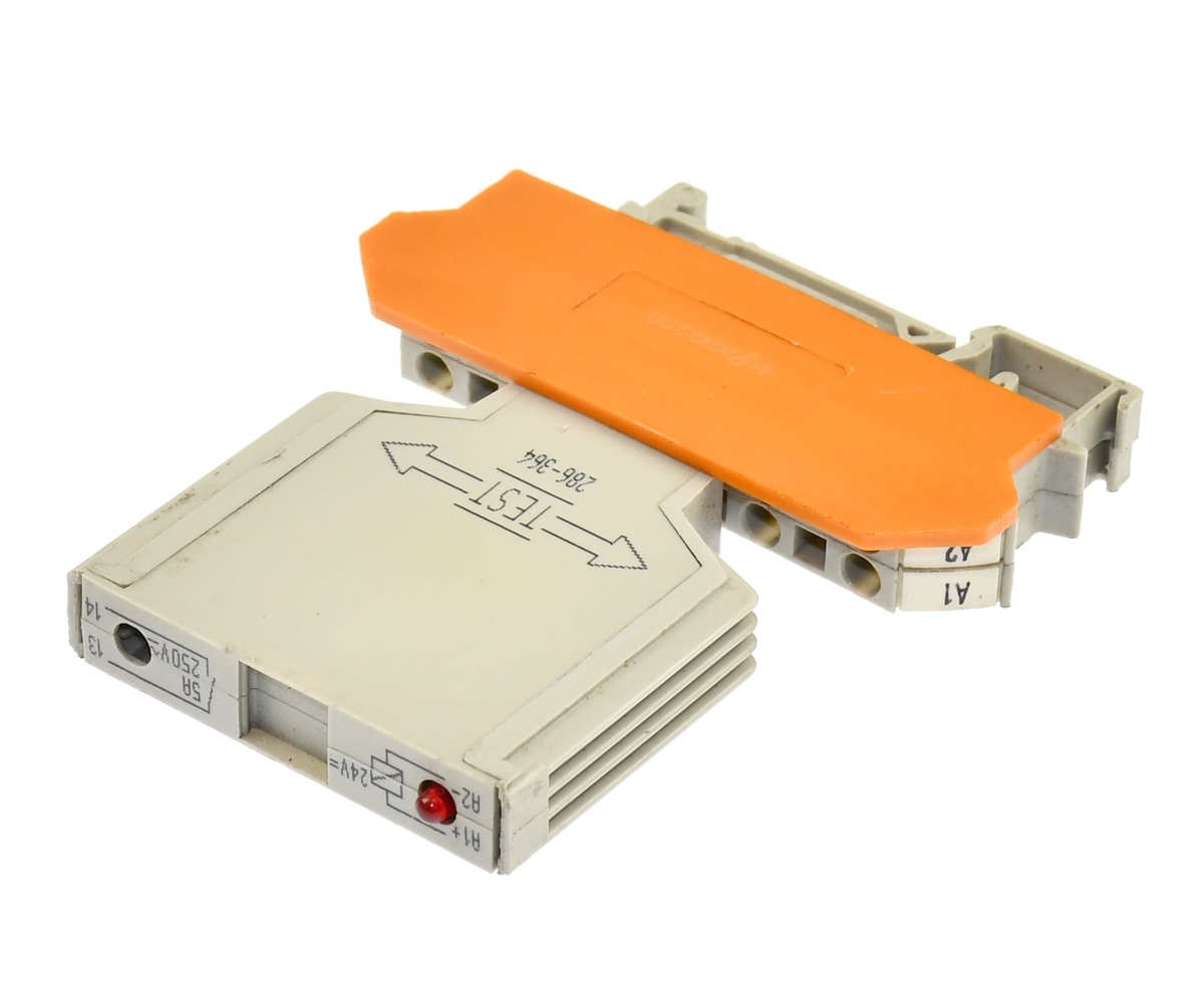Używany, całkowicie sprawny element o kodzie: 286-364, produkt firmy Wago. Podstawa przekaźnika o symbolu IEC 60947-7-1 Wago. Cewka przekaźnika sterowana napięciem 24VDC. Obciążalność styku przekaźnika: 5A, 250V. Styk NO. Złącza w podstawce sprężynowe. Element, jego dane pokazane na załączonych fotografiach.