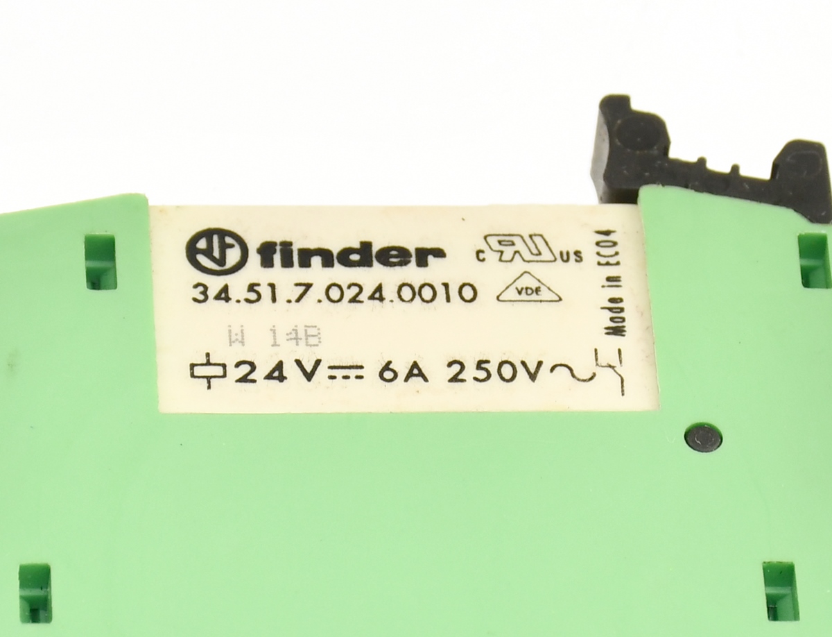 Używany, całkowicie sprawny przekaźnik o symbolu: 34.51.7.024.0010, produkt firmy FINDER w zestawie z podstawką o symbolu: PLC-BSC-24DC/21 firmy Phoenix Contact. Przekaźnik interfejsowy z cewką sterowaną DC24V. Pochodzi z demontażu całkowicie sprawnych maszyn przemysłowych.