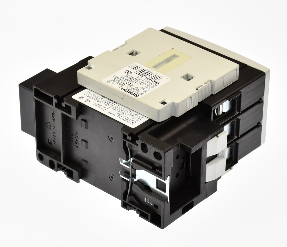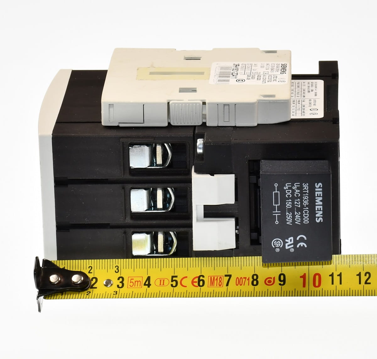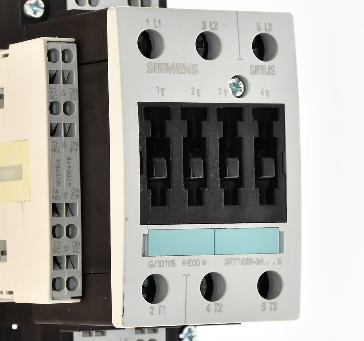 Używany, całkowicie sprawny i w idealnym stanie element o symbolu: 3RT1035-3AL20, stycznik trójfazowy renomowanej firmy Siemens, moc przełączeniowa 18,5kW, Cewka sterowana napięciem przemiennym 230V. W zestawie dwa styki pomocnicze o symbolu: 3RH1921-2DA11 oraz zabezpieczenie przeciwprzepięciowe cewki: 3RT1936-1CD00. Styki są w idealnym stanie, brak zużycia.