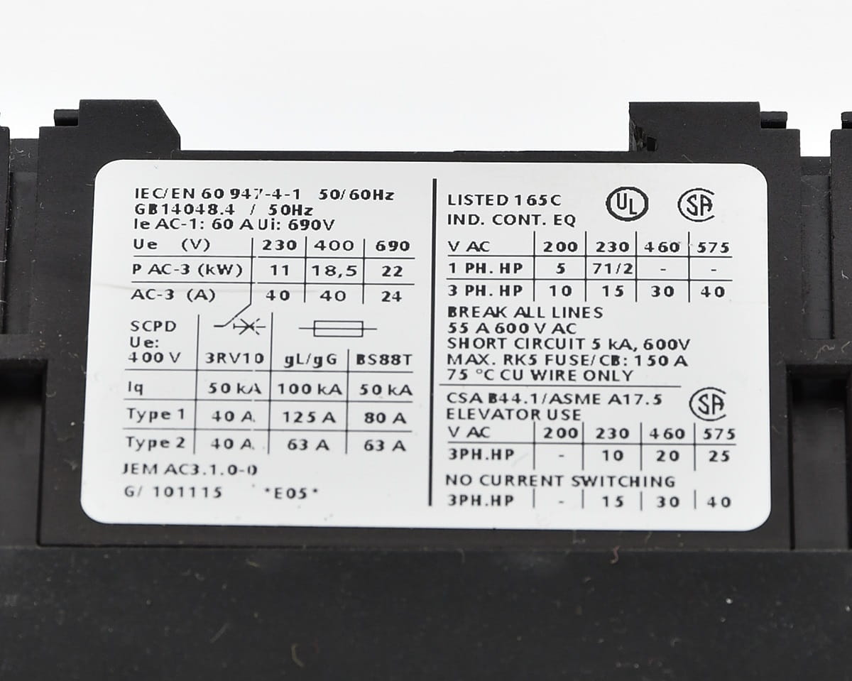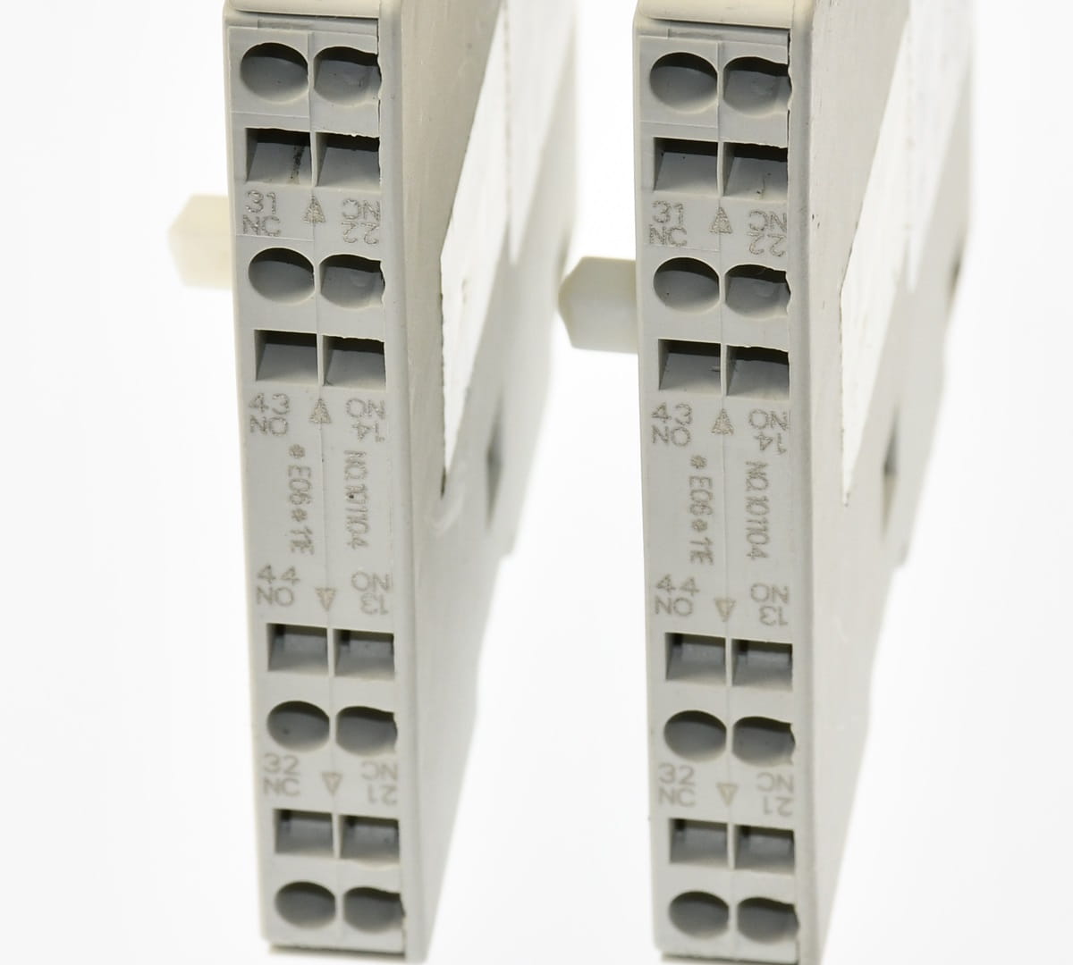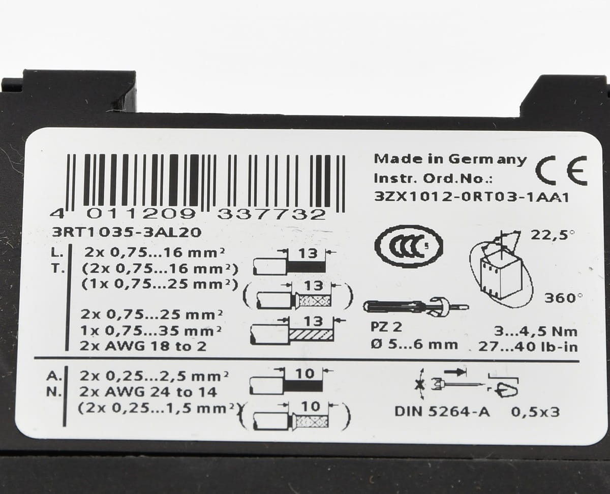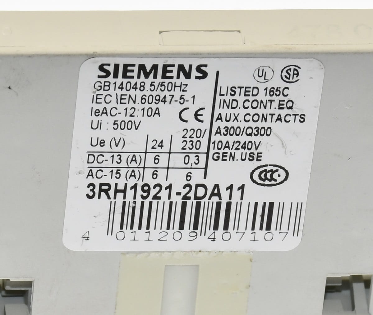 Używany, całkowicie sprawny i w idealnym stanie element o symbolu: 3RT1035-3AL20, stycznik trójfazowy renomowanej firmy Siemens, moc przełączeniowa 18,5kW, Cewka sterowana napięciem przemiennym 230V. W zestawie dwa styki pomocnicze o symbolu: 3RH1921-2DA11 oraz zabezpieczenie przeciwprzepięciowe cewki: 3RT1936-1CD00. Styki są w idealnym stanie, brak zużycia.