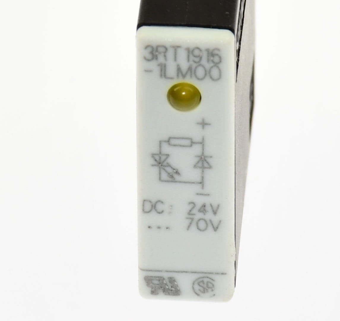 Nowy, nie używany element o oznaczeniu: 3RT1916-1LM00, produkt firmy Siemens. Moduł diody tłumiącej przepięcia cewek styczników z diodą sygnalizującą pracę. Oryginalnie zapakowane, pochodzi z likwidowanych zasobów magazynu utrzymania ruchu.