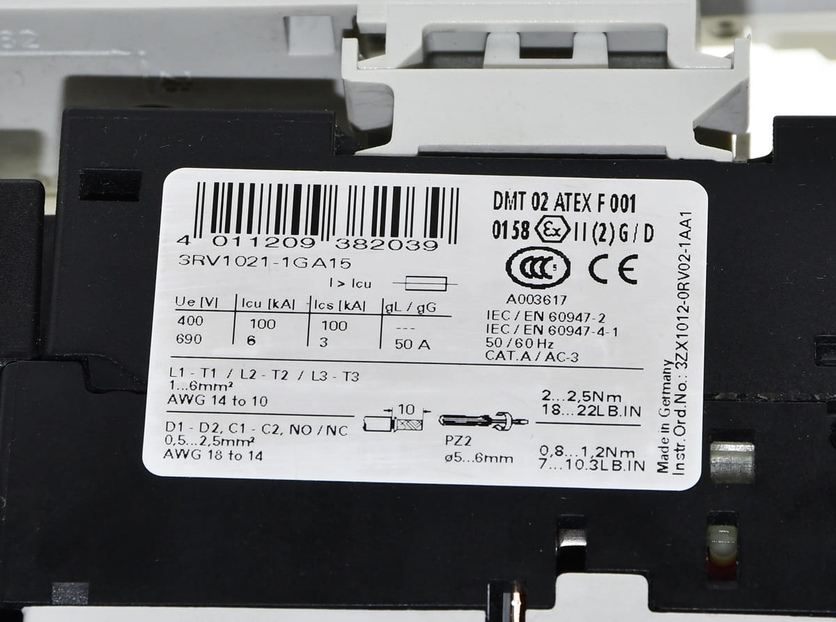 3RV1021-1GA15 Siemens Wyłącznik termiczny 4,5-6,3A