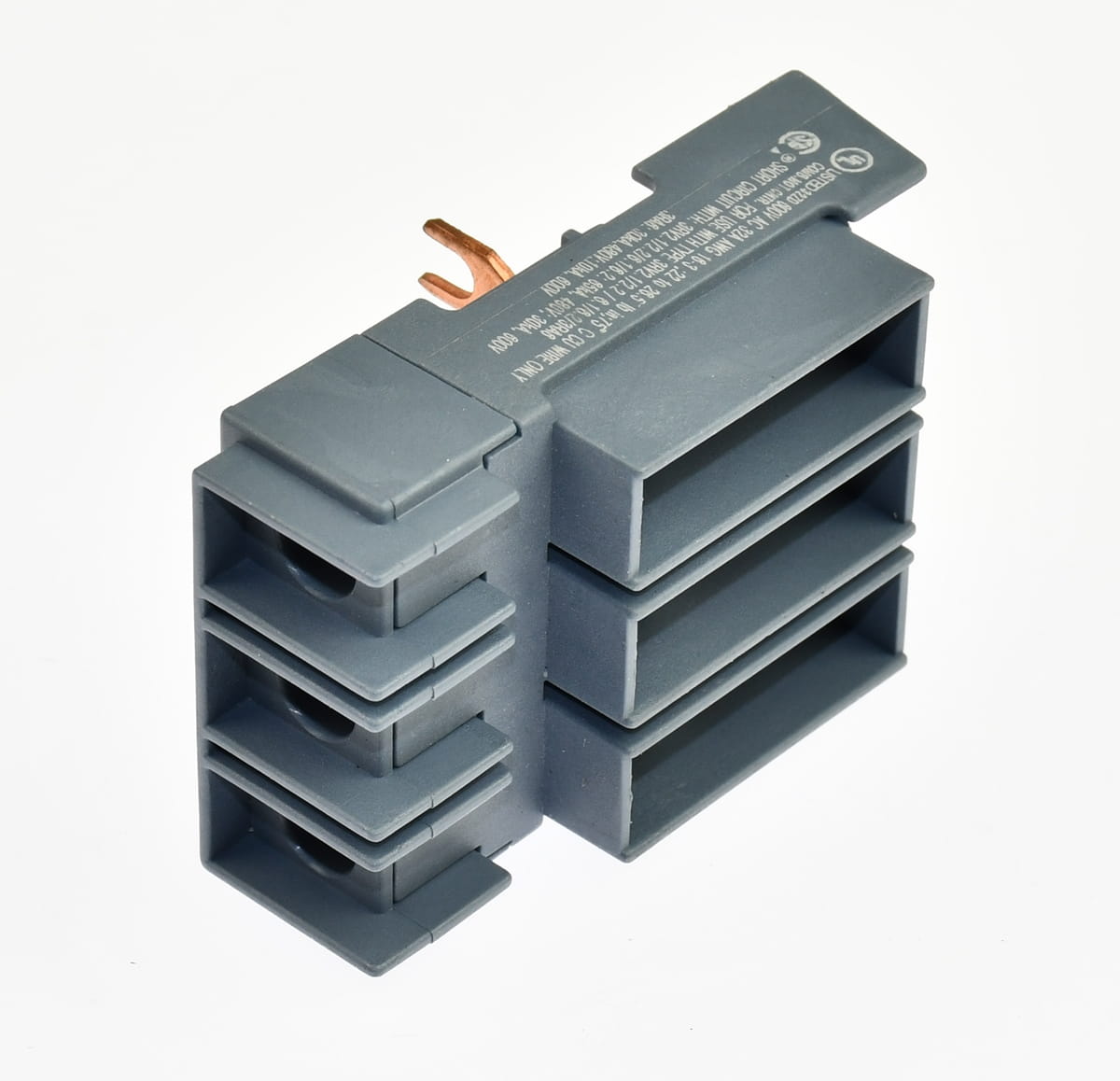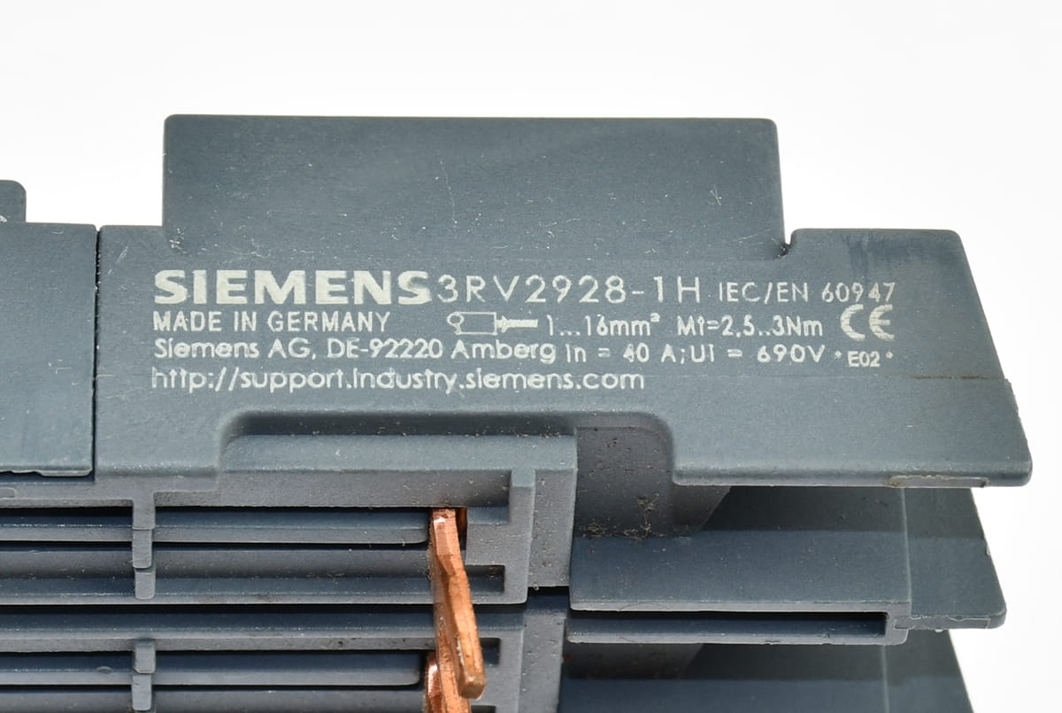 Produkt o oznaczeniu: 3RV2928-1H, produkt firmy Siemens. Blok zacisków typu E. Pochodzi z likwidowanych zasobów magazynu utrzymania ruchu, przechowywany bez opakowania, możliwe zabrudzenia i zarysowania.