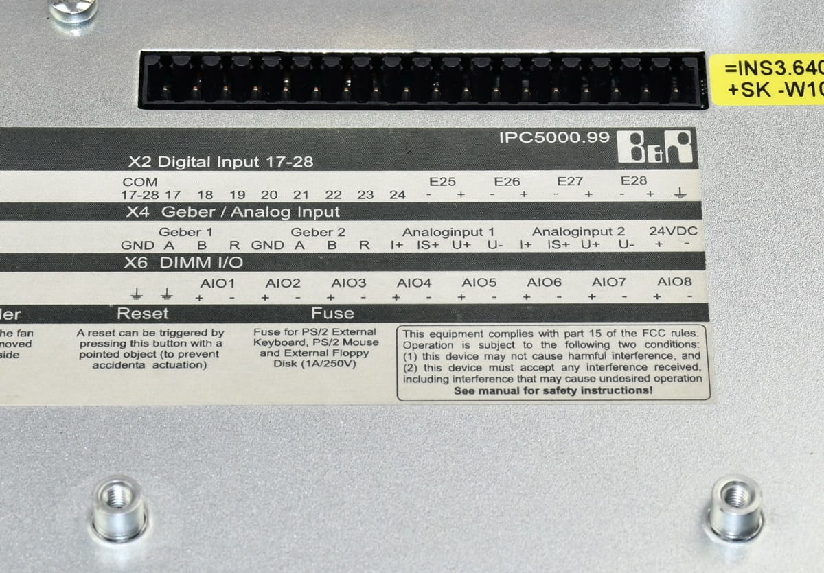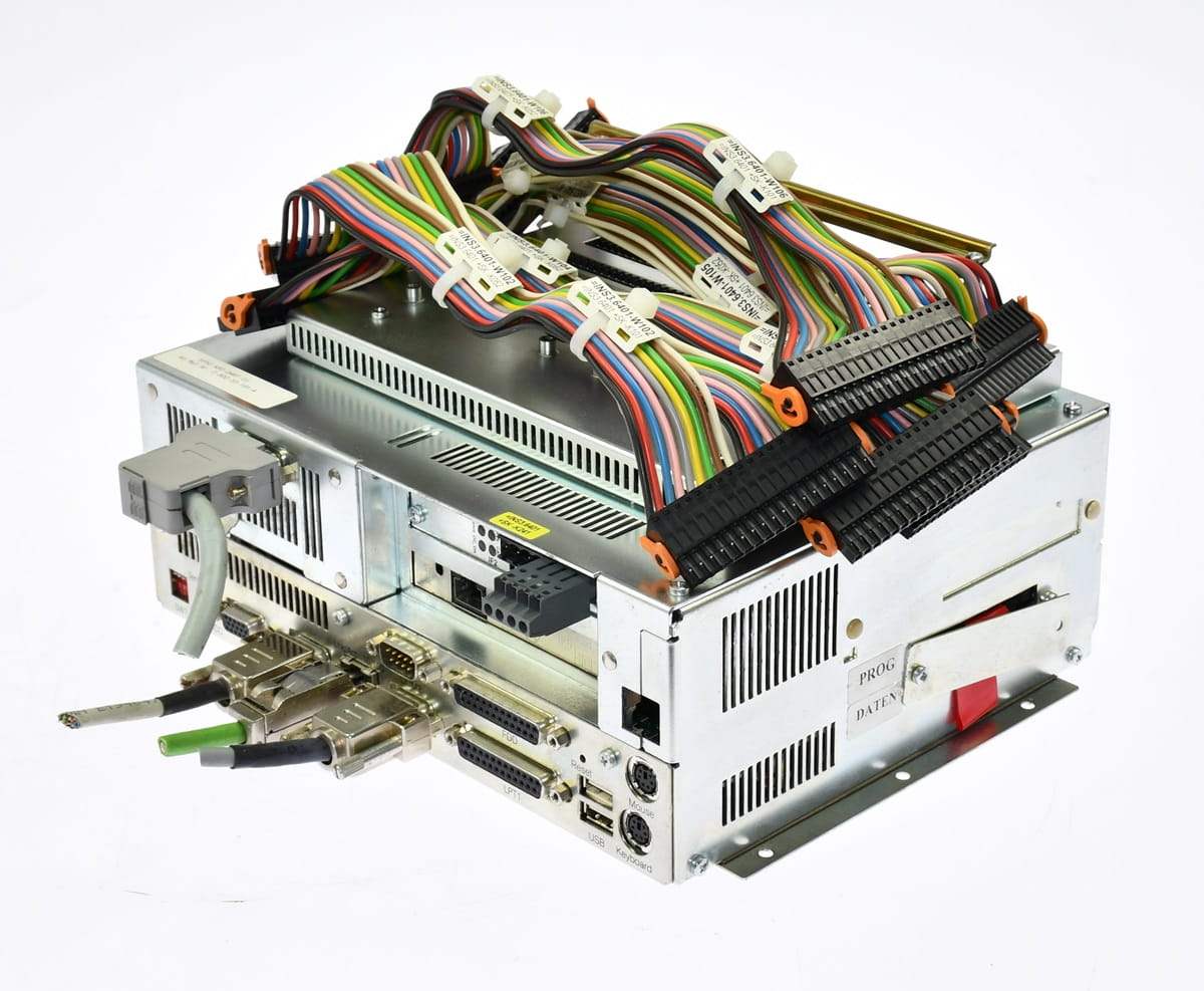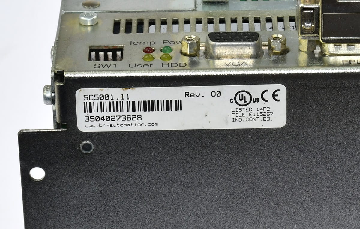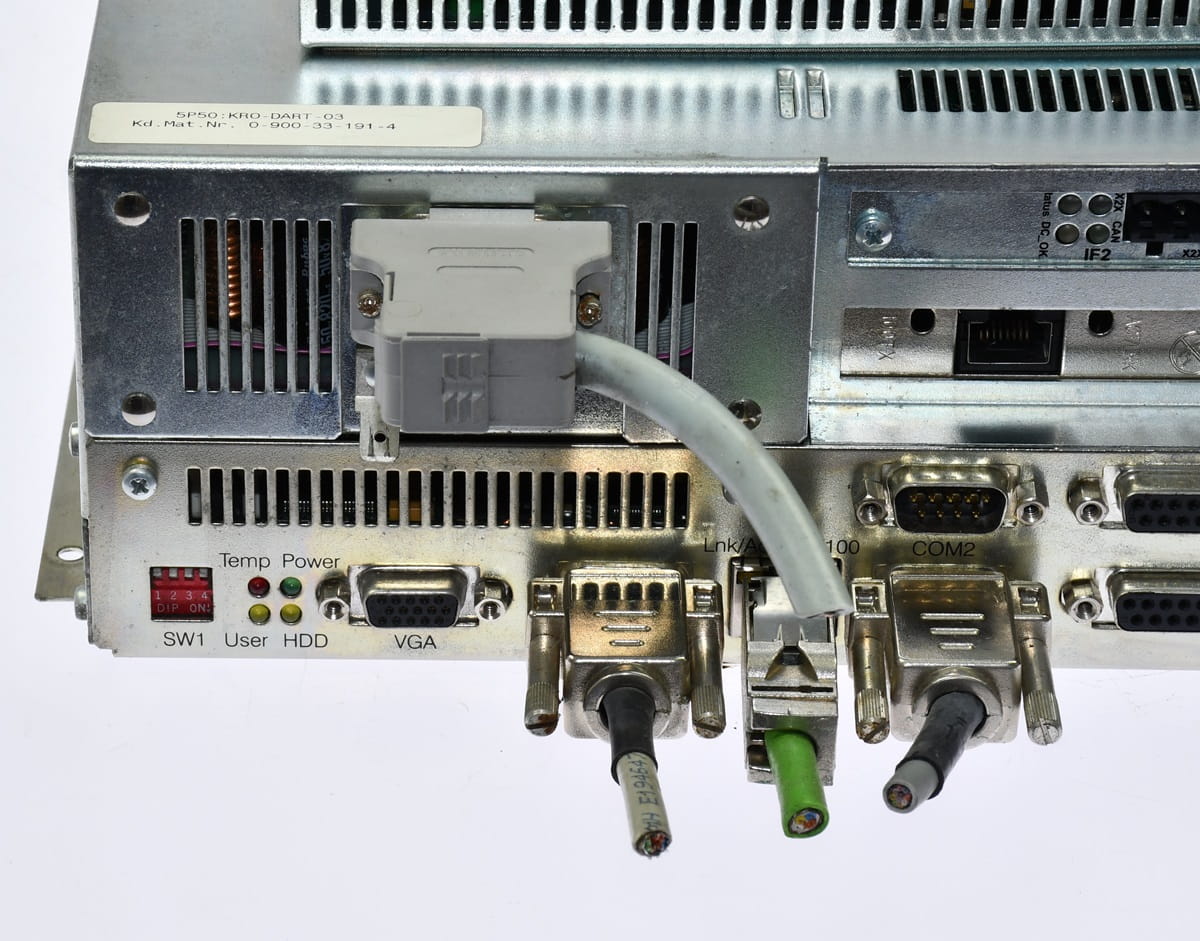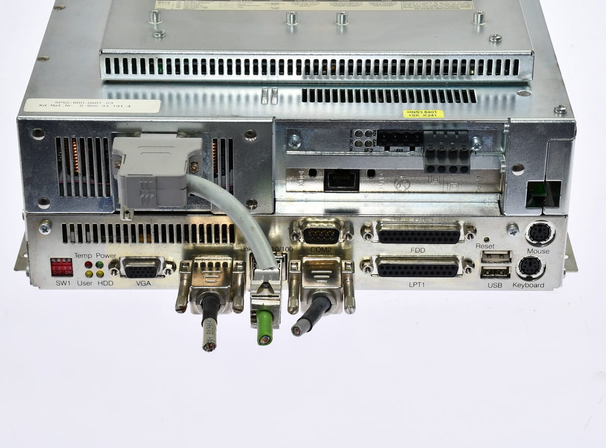 Używany, całkowicie sprawny komputer przemysłowy o oznaczeniu: 5P50:KRO-DART-03 z jednostką główną: 5C5001.11, produkt firmy: B&R Automation. W zestawie są wszystkie, pokazane na zdjęciach elementy jak karty wejść i wyjść cyfrowych i analogowych, przewody, karty pamięci. Zestaw pochodzi z demontażu całkowicie sprawnej maszyny przemysłowej.