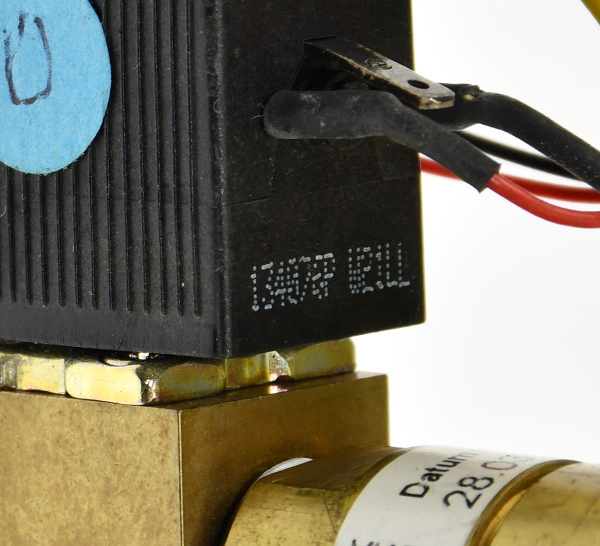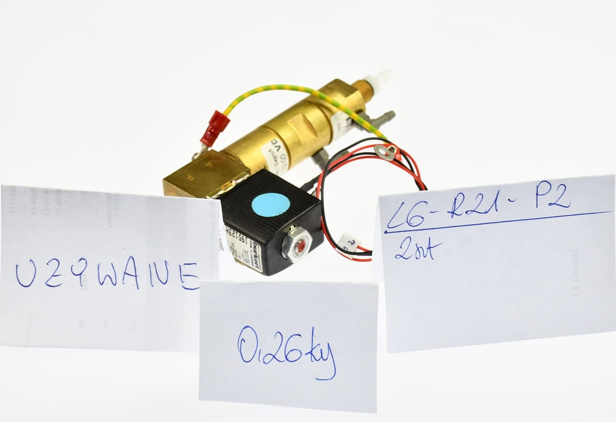 Używany, całkowicie sprawny element o oznaczeniu: 6021 A 0,8 FPM MS, produkt firmy Burkert - Elektrozawór gazowy z cewką sterowaną napięciem 24V. Zamontowana zwężka pomiarowa przepływu: BM-352389. Pochodzi z demontażu całkowicie sprawnych maszyn przemysłowych.
