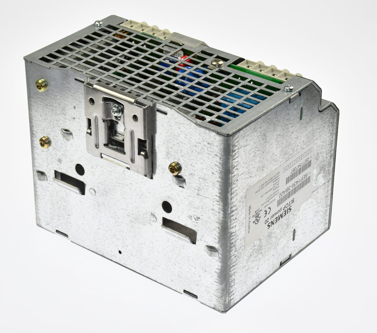 Używany, całkowicie sprawy element o oznaczeniu: 6EP1436-3BA00, produkt firmy Siemens. Zasilacz SITOP power 20. Na wyjściu napięcie 24V DC z wydajnością prądu do 20A. Moc 480W. Zasilanie trójfazowe 400 - 500V AC. Pochodzi z demontażu całkowicie sprawnych maszyn przemysłowych, testowany pod maksymalnym obciążeniem w naszym laboratoriom.