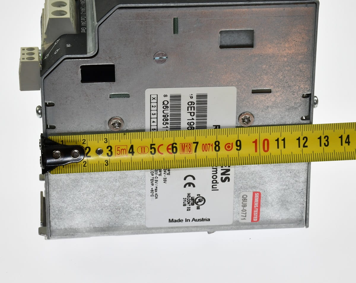 Używany element o symbolu: 6EP1961-3BA20, produkt firmy Siemens. Moduł redundancji zasilania. SITOP MODULAR REDUNDANCY MODULE INPUT/OUTPUT: 24 V DC /40 A FIT FOR DECOUPLING OF 2 SITOP POWER SUPPLY MODULES WITH MAX. 20 A OUTPUT CURRENT EACH. Pochodzi z demontażu całkowicie sprawnych maszyn przemysłowych.