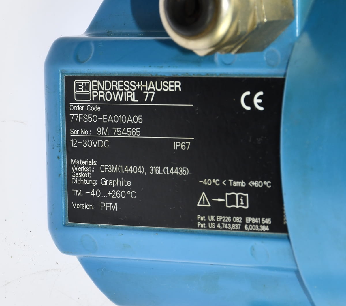 Nie używany, pochodzący z likwidowanych zasobów magazynu utrzymania ruchu element o oznaczeniu: 77FS50-EA010A05, produkt firmy: Endress+Hauser, PROWIRL 77. Przepływomierz do pary wodnej pod ciśnieniem. Pochodzi z likwidowanych zasobów magazynu utrzymania ruchu, przechowywany był na magazynie bez opakowania więc wystąpiły pewne zabrudzenia obudowy, co widać na zdjęciach.