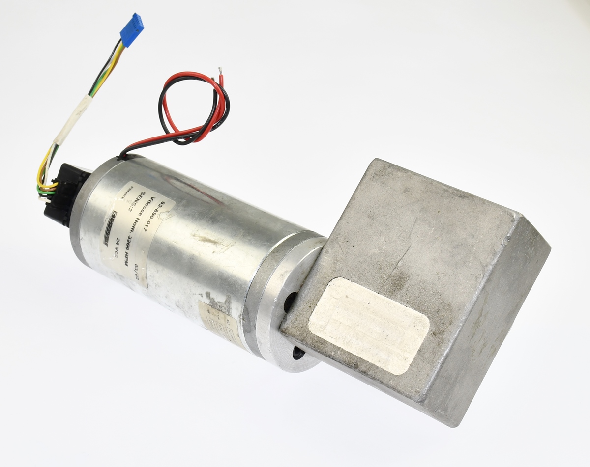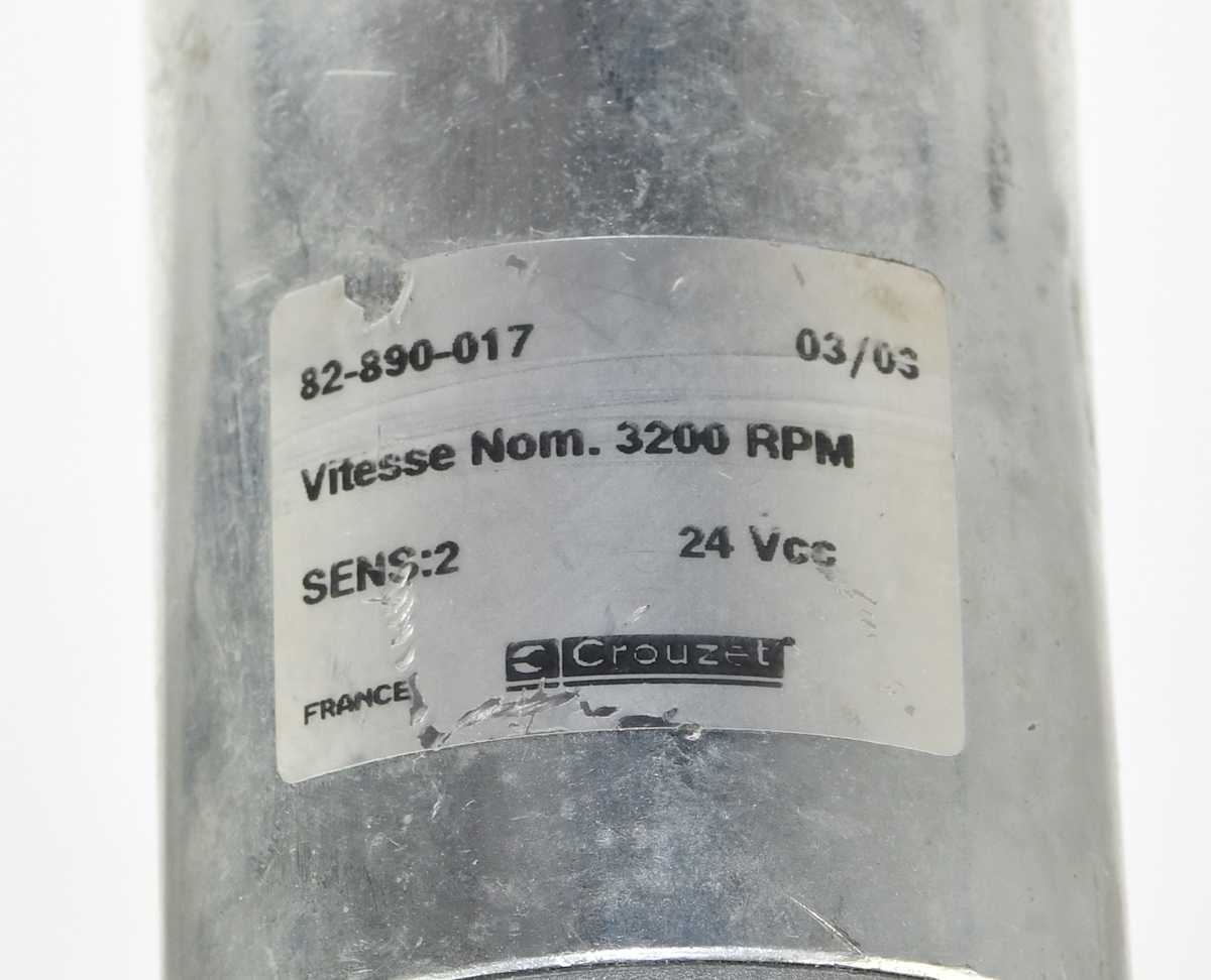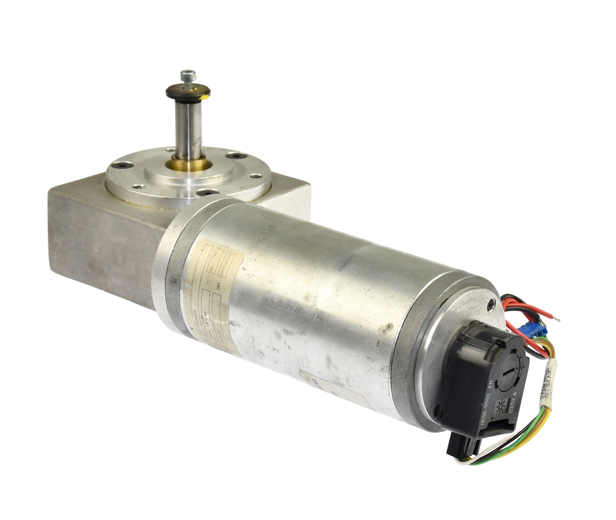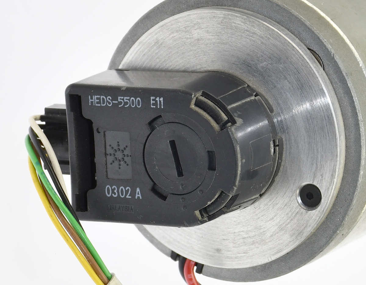 Używany, całkowicie sprawny serwosilnik prądu stałego o oznaczeniu: 82-890-017, producent: Crouzet. Silnik zasilany napięciem DC 24V, zespolony z przekładnią i enkoderem inkrementalnym o oznaczeniu: HEDS-5500, na wyjściu po przekładni: 120 obrotów na minutę. Obroty samego silnika 3200RPM.