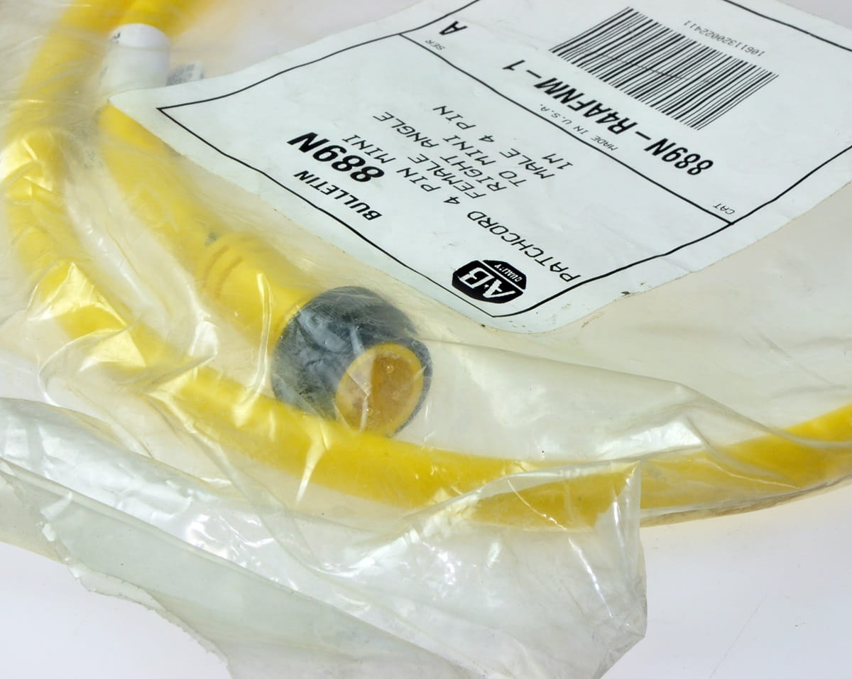 Nowy, nigdy nie używany, oryginalnie zapakowany element o symbolu: 889N-R4AFNM-1, produkt firmy Allen-Bradley. Przewód 4-piny zakończony z obu stron wtyczkami męską i żeńską.