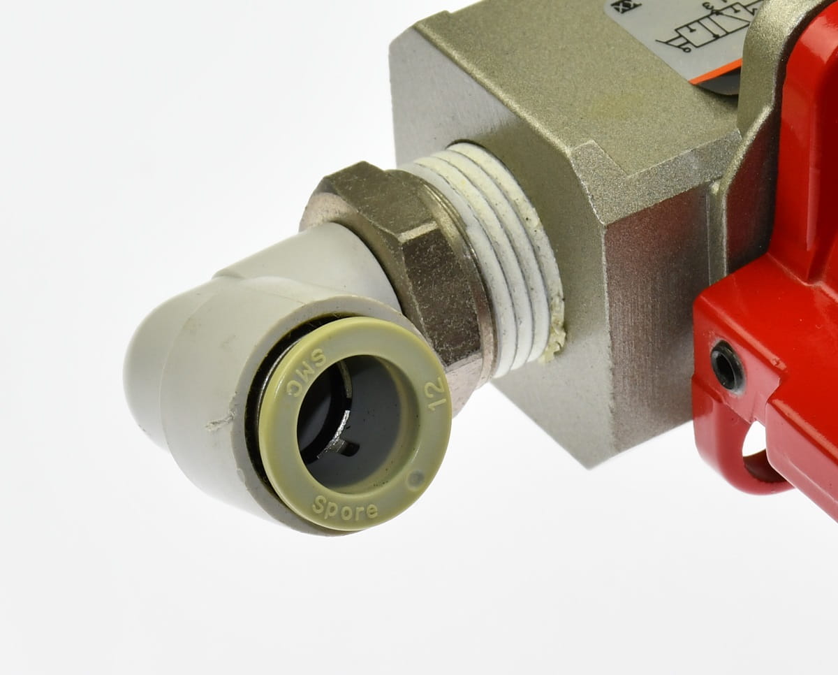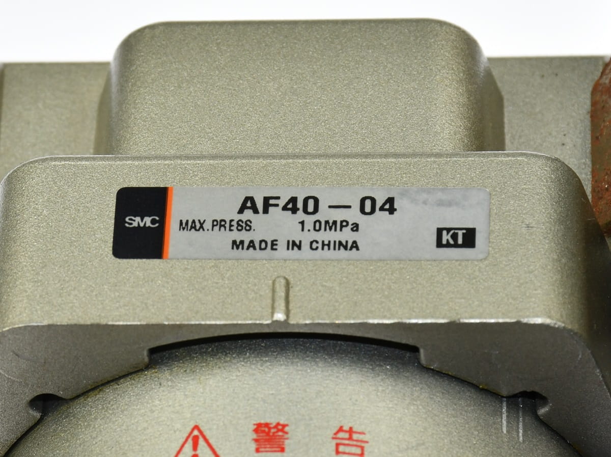 Używana, całkowicie sprawna stacja przygotowania sprężonego powietrza składająca się z następujących elementów: AF40-04 - filtr powietrza; AR40-04 - regulator ciśnienia; ISE30-01-25-M - presostat z wyświetlaczem aktualnego ciśnienia; VHS40-04 - zawór bezpieczeństwa, odcinający ze spustem. Do tego mocowanie i szybkozłączki do podłączenia przewodów sprężonego powietrza. Elementy mocujące i połączeniowe posiadają nieznaczne ślady korozji, co pokazaliśmy na zdjęciu Nr 12. Przewód od presostatu ma bardzo krotko odcięty przewód przy wtyczce.