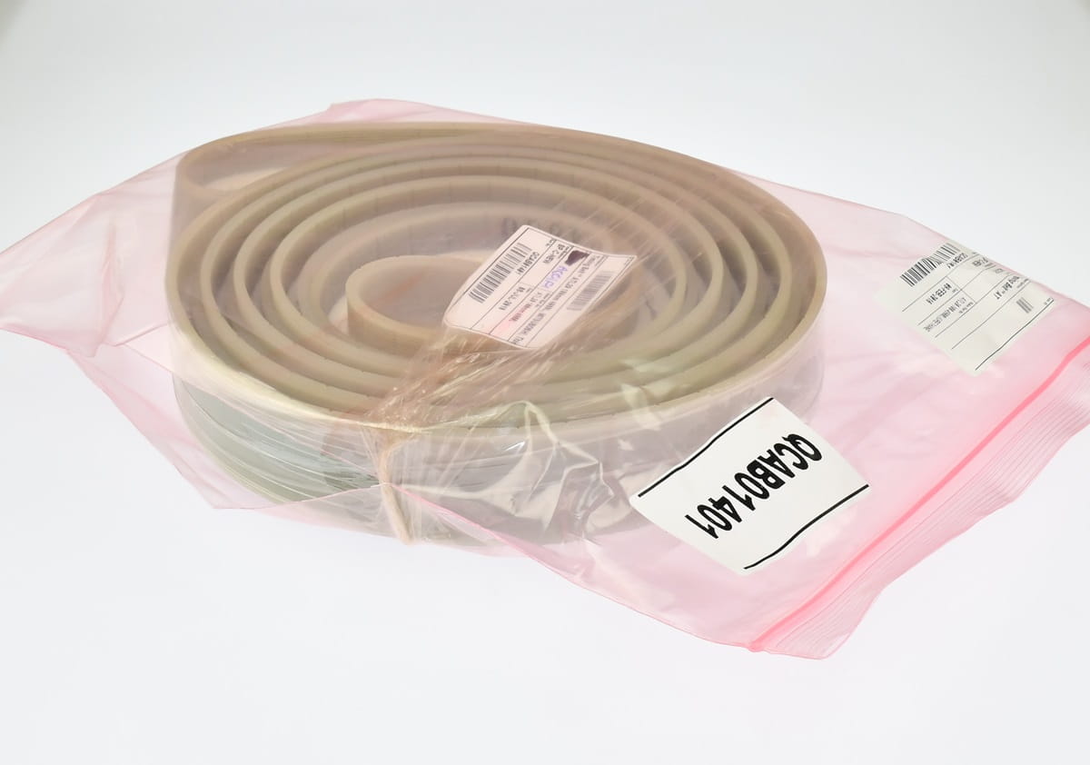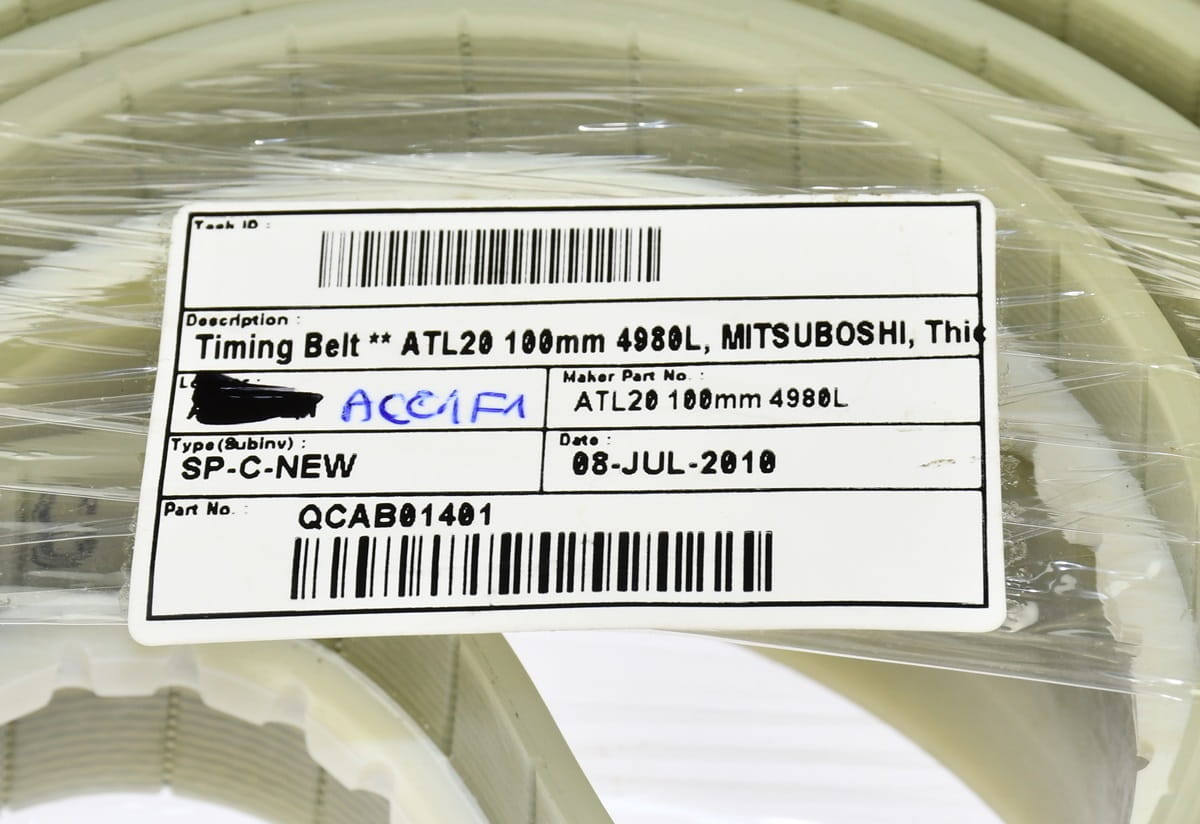 Nie używany, pochodzący z likwidowanych zapasów magazynu utrzymania ruchu pas transmisyjny z prowadzeniem o oznaczeniu: ATL20 100 MM 4980L. Szerokość pasa: 38 mm, długość: 4980 mm. Nie posiada oryginalnego opakowania, opakowanie zastępcze.