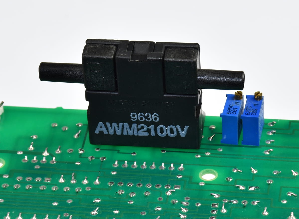 Używany, całkowicie sprawny element o oznaczeniu: AWM2100V, produkt firmy HONEYWELL. Czujnik przepływu gazu o zakresie pomiaru +/-200sccm zamontowany na płytce na PCB. Jest to czujnik różnicowy ciśnienia przeznaczony do współpracy ze zwężką wg. dokumentacji producenta. Oznaczenie płytki Bipap S/T PCA 332065.