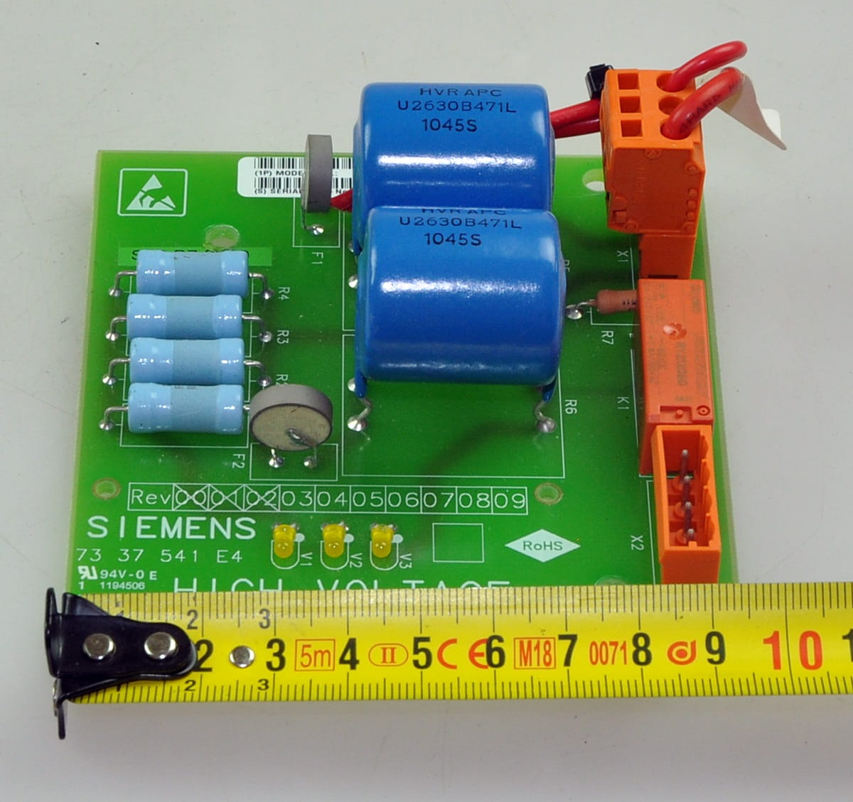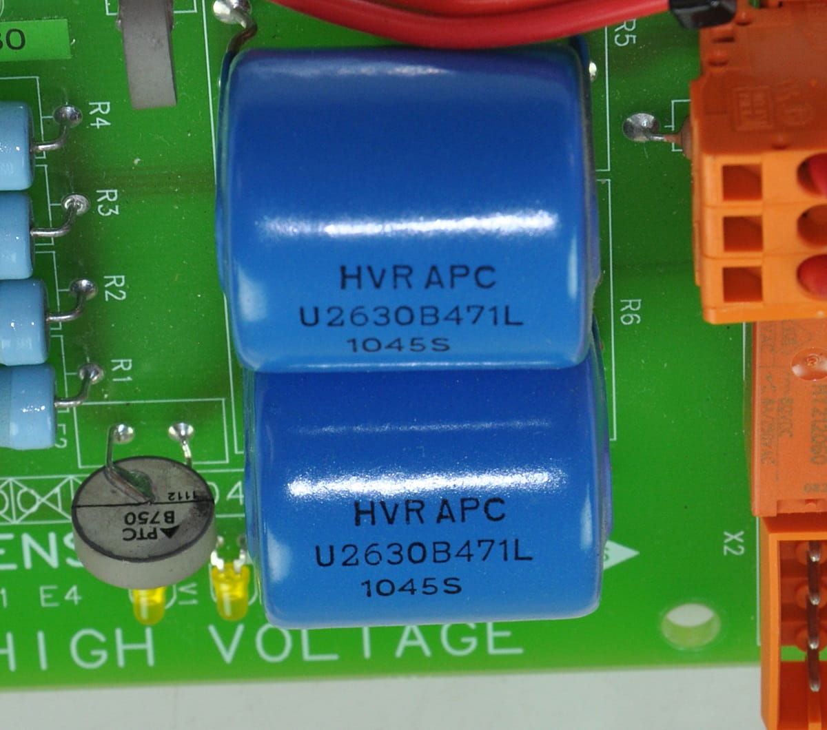 Używany, Całkowicie sprawny moduł elektroniczny z dwoma bezindukcyjnymi rezystorami dużej mocy HVRAPC U2630B471L. Rezystancja pojedynczego rezystora 471 omów.