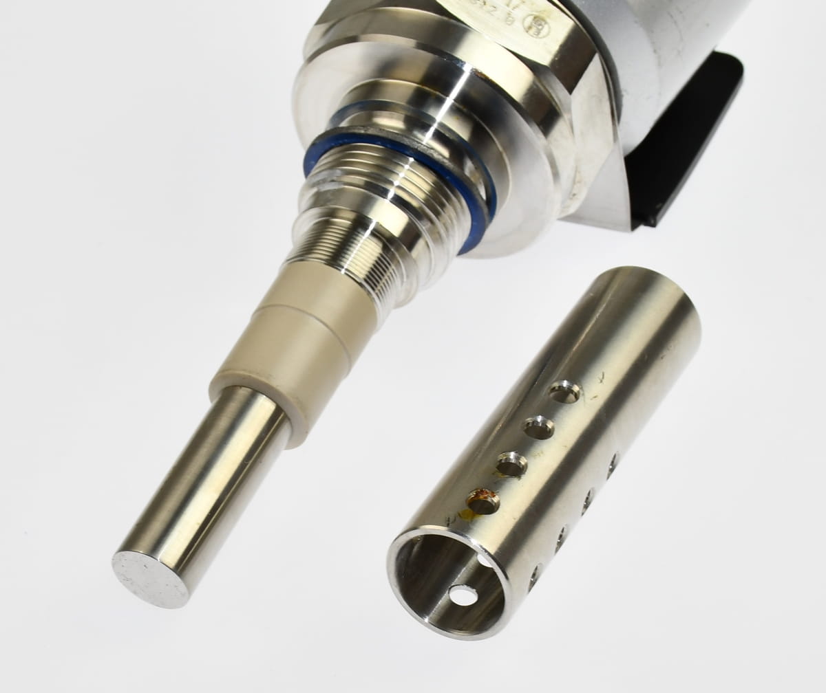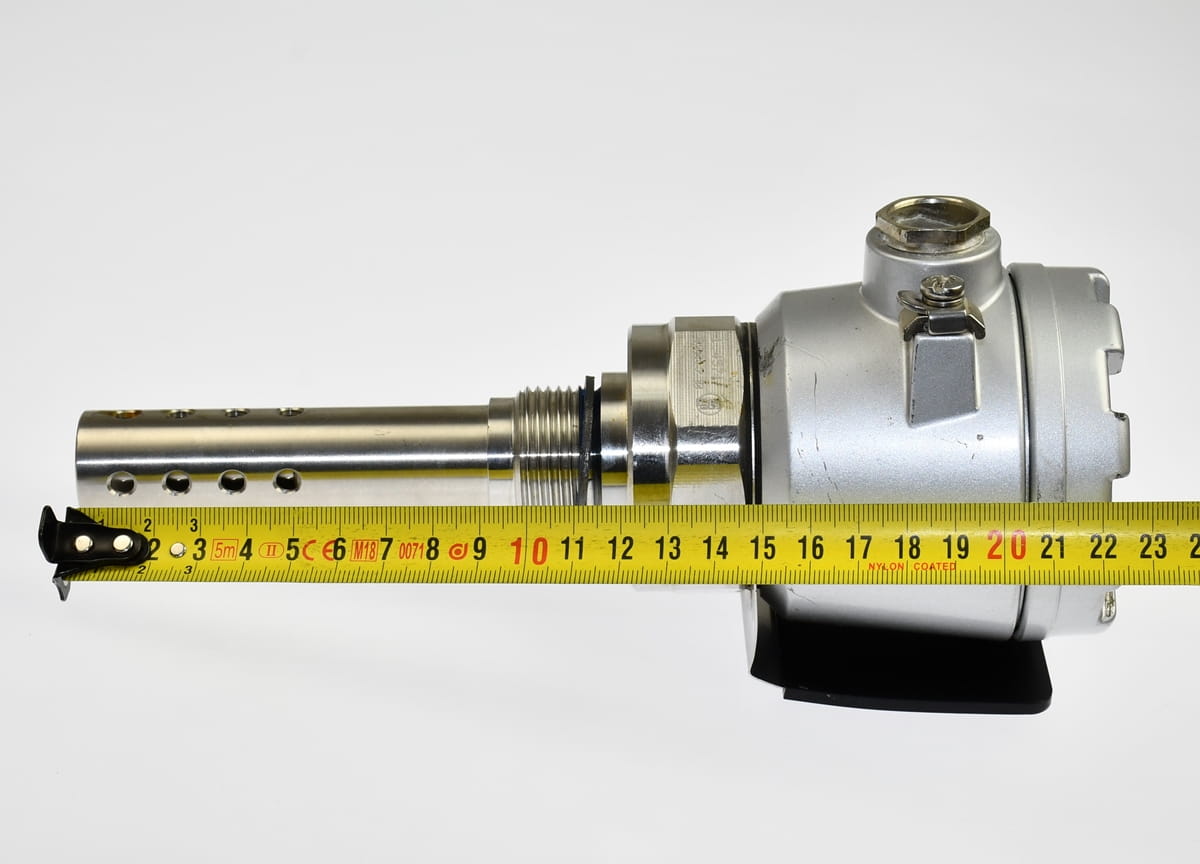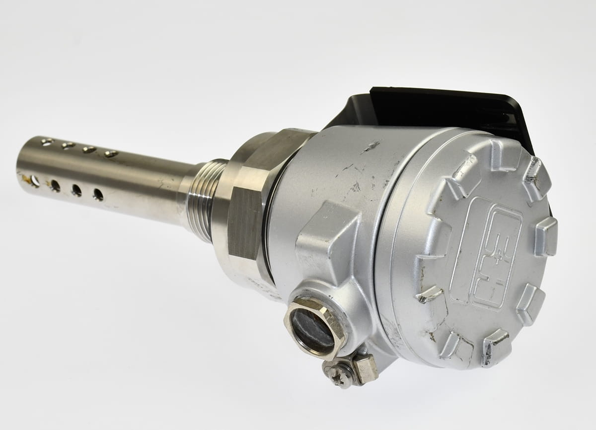Używany przetwornik o symbolu: CLS12-A1D1A Condumax, produkt firmy Endress+Hauser. Jest to czujnik o wysokiej odporności cieplnej i mechanicznej, do pomiaru przewodności pary/wody w energetyce. Jest przeznaczony szczególnie do pomiaru mediów o niskiej przewodności, nawet w warunkach wysokich temperatur i ciśnień, celem zabezpieczenia instalacji przed odkładaniem się osadów i korozją. Pochodzi z demontażu całkowicie sprawnych maszyn przemysłowych.