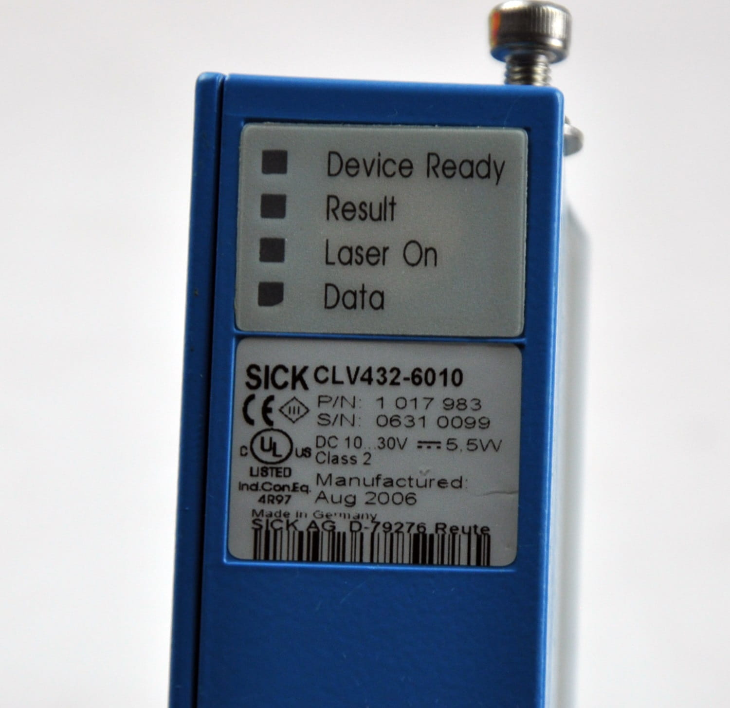 Używany, całkowicie sprawny skaner kodów paskowych o symbolu: CLV432-6010, produkt renomowanej firmy SICK, nr katalogowy produktu: 1017983. Obsługuje Wszystkie powszechnie stosowane typy kodów, Code 39, Code 128, Code 93, Codabar, GS1-128 / EAN 128, UPC / GTIN / EAN, 2/5 Interleaved. Pochodzi z demontarzu sprawnych maszyn w pomieszczeniach Clean room.