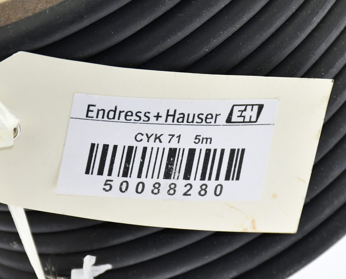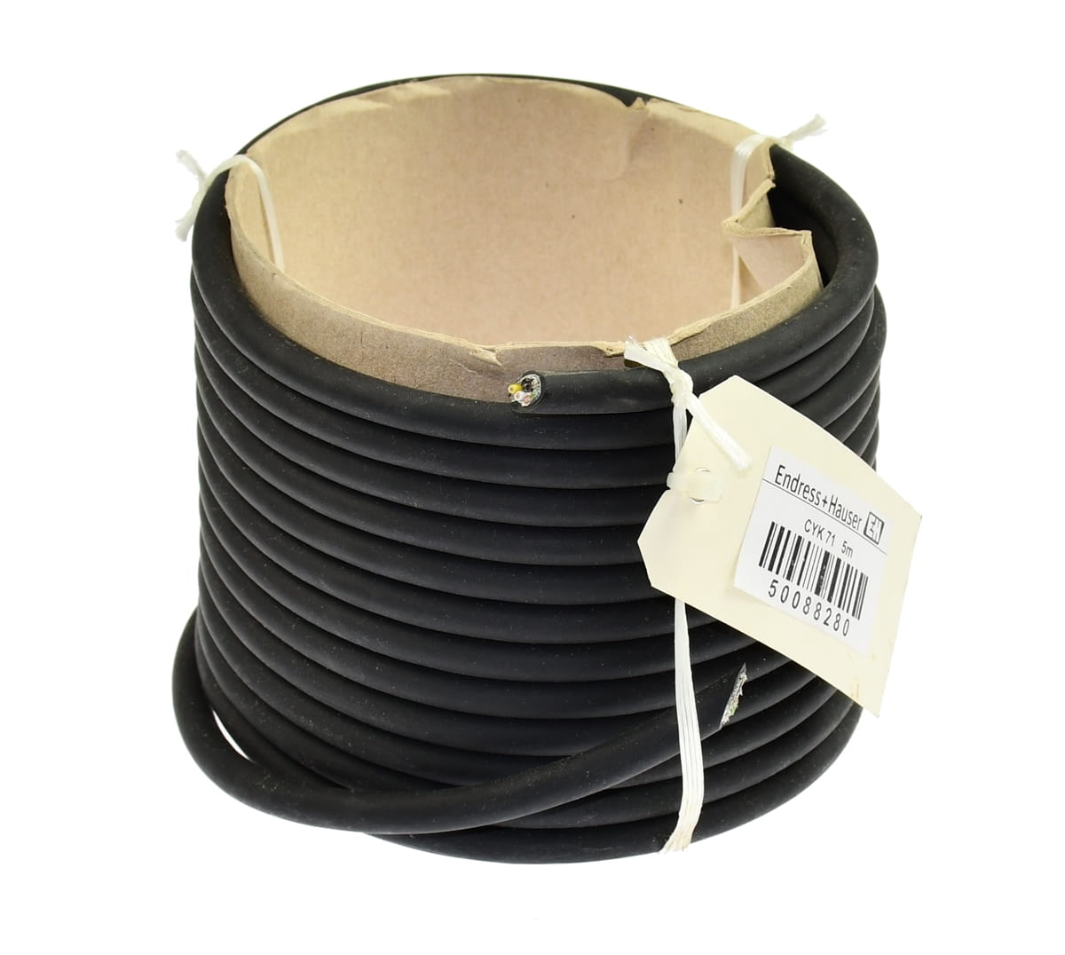Nie używany, pochodzący z likwidowanych zasobów magazynu utrzymania ruchu element: CYK 71 5m, producent: Endress+Hauser; kod zamówieniowy: 50088280. Cyfrowy przewód pomiarowy o długości 5 metrów. CYK10 zapewnia całkowicie wodoodporne podłączenie czujników ze złączem Memosens do przetwornika pomiarowego. Na rolce, bez żadnych wtyczek.