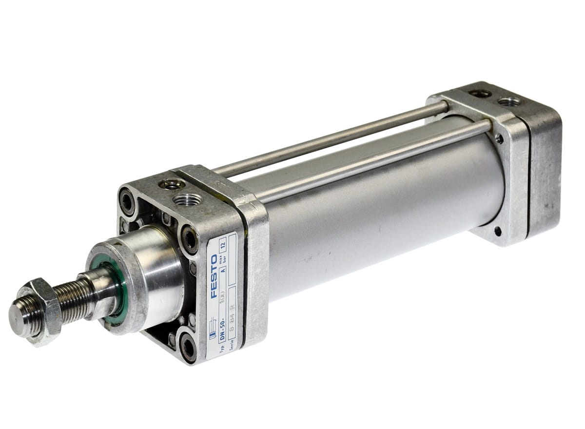 Nie używany element o symbolu: DN-50-100-A, produkt renomowanej FESTO, Numer katalogowy producenta: 8 84 R Siłownik pneumatyczny obustronnego działania, pochodzi z likwidowanych zapasów magazynu utrzymania ruchu, opakowanie zastępcze.