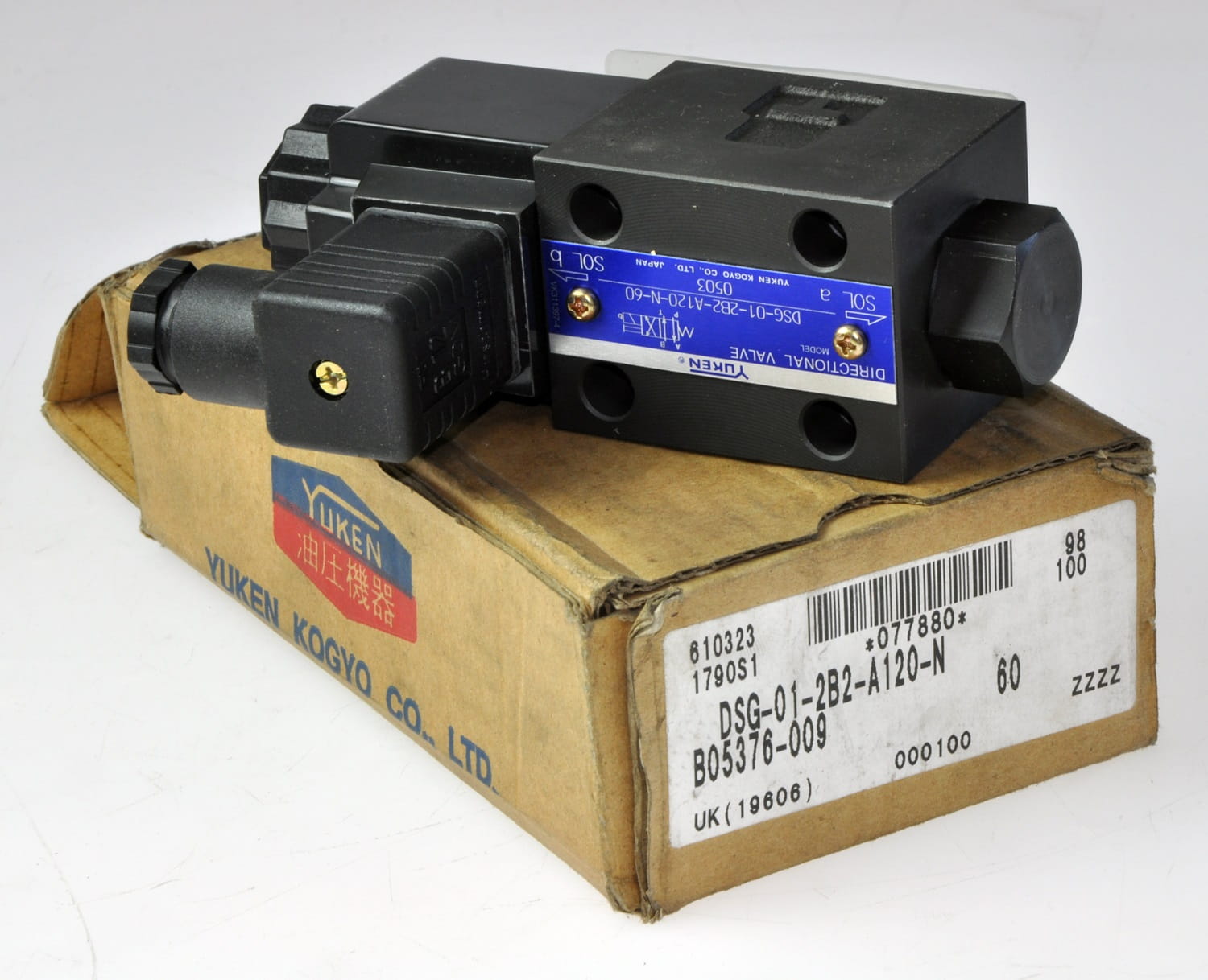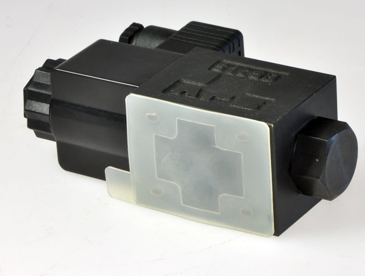 Nowy, nigdy nie używany element o symbolu: DSG-01-2B2-A120-N-60, produkt renomowanej firmy YUKEN. Jest to monostabilny elektrorozdzielacz hydrauliczny do sterowania siłownikiem obustronnego działania. Posiada swoje oryginalne opakowanie. Zapas utrzymania ruchu likwidowanej linii przemysłowej.