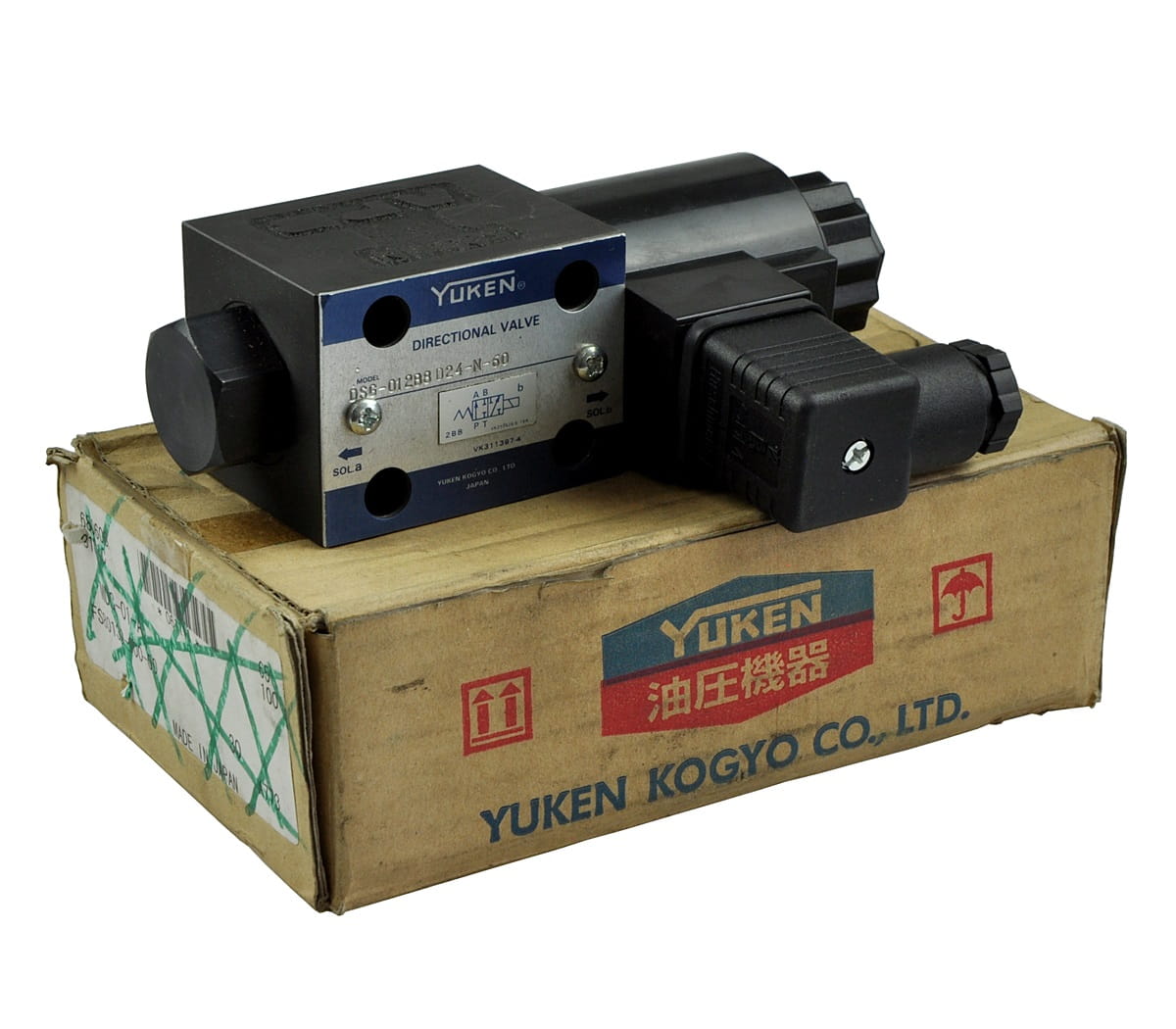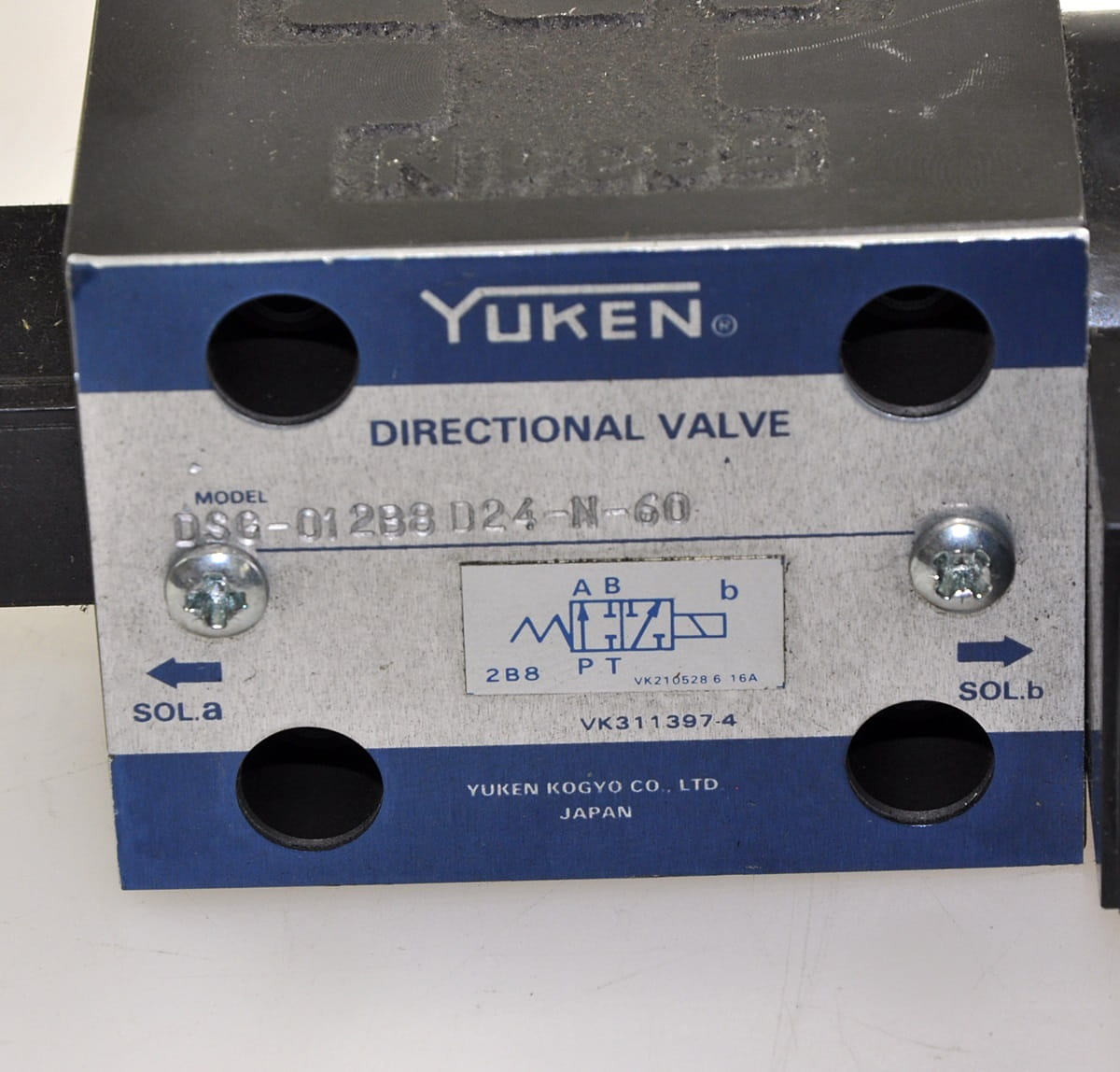 Nowy, nigdy nie używany elektrozawór hydrauliczny o symbolu: DSG-012B8 D24-N-60, produkt renomowanej firmy YUKEN. Pochodzi z zapasów magazynowych utrzymania ruchu, posiada oryginalne opakowanie.