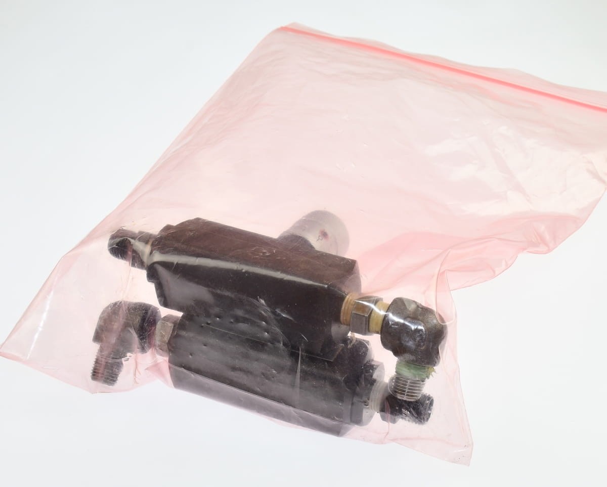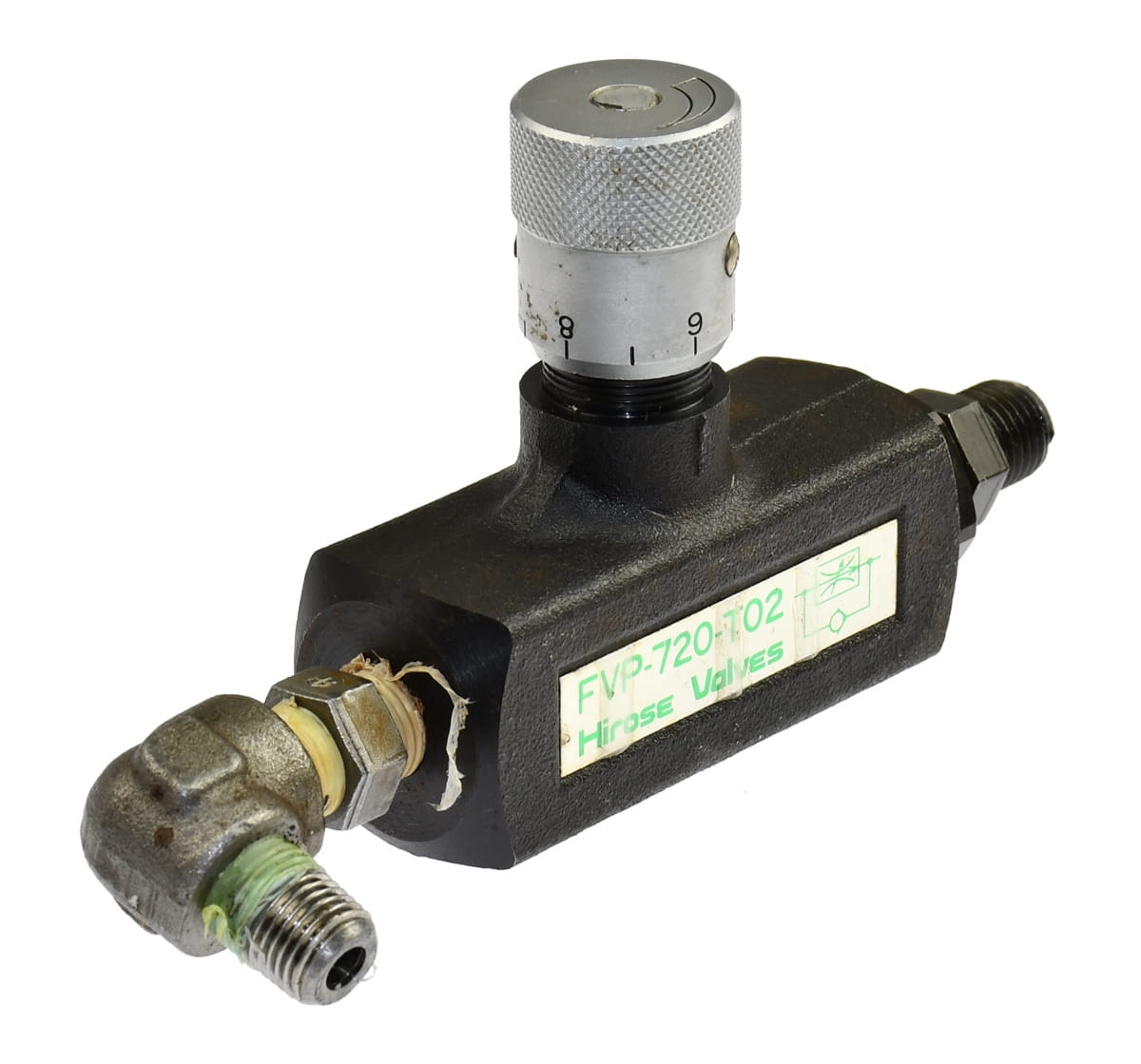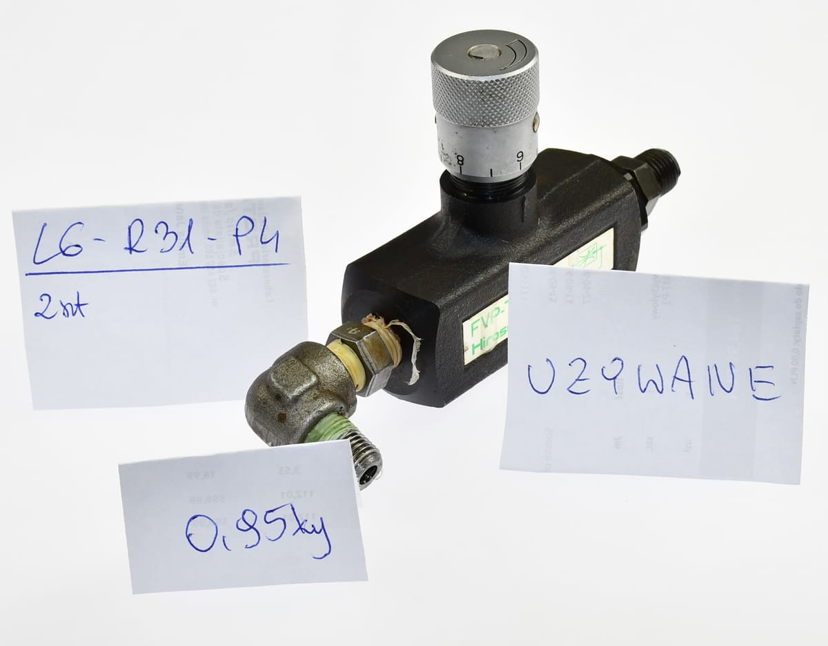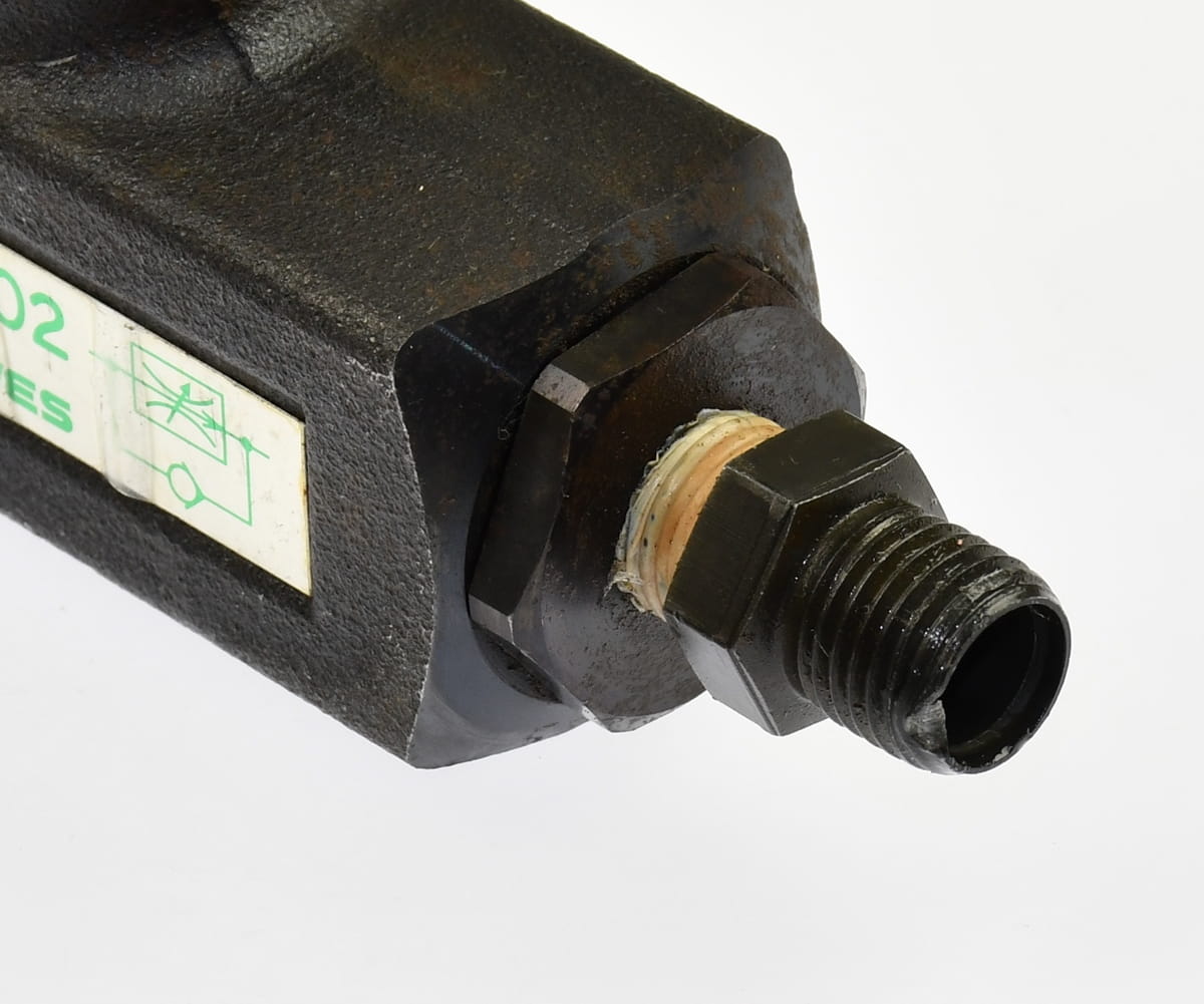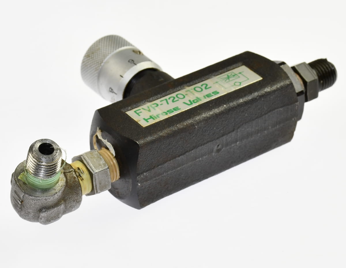 Używany, całkowicie sprawny element o oznaczeniu: FVP-720-T02, produkt firmy: Hirose Valves. Regulowany Hydrauliczny zawór tłumiący przepływ oleju, z funkcją zwrotną. Pochodzi z demontażu całkowicie sprawnych maszyn przemysłowych.