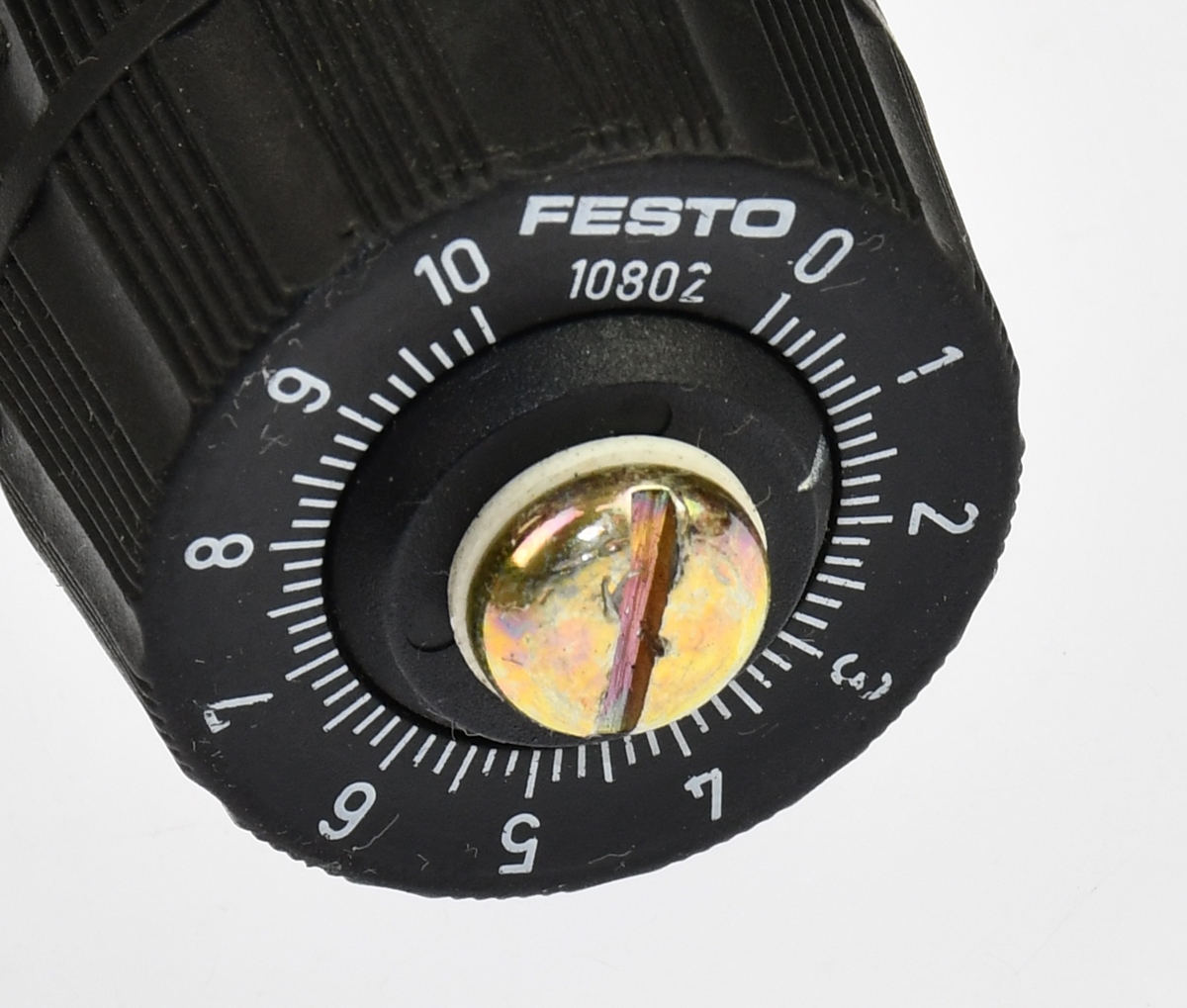 Używany element o oznaczeniu: GRP-70-PK-3, produkt firmy FESTO, Nr katalogowy:10802. Precyzyjny zawór dławiąco-zwrotny.