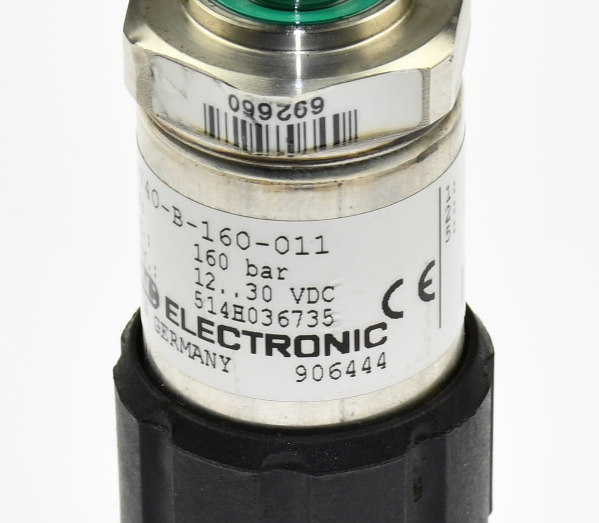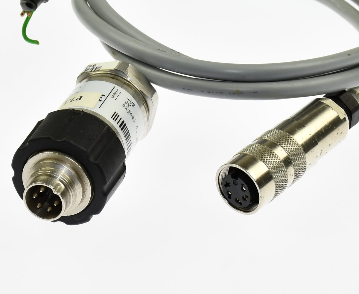 Używany, całkowicie sprawny przetwornik ciśnienia w systemach hydrauliki siłowej. Produkt o symbolu: HDA 4740-B-160-011, wyprodukowany przez firmę HYDAC. Zakres pomiaru 0 - 160 barów. Odpowiedź czujnika proporcjonalna 0 - 10V. W zestawie jest wtyczka z przewodem sygnałowym.