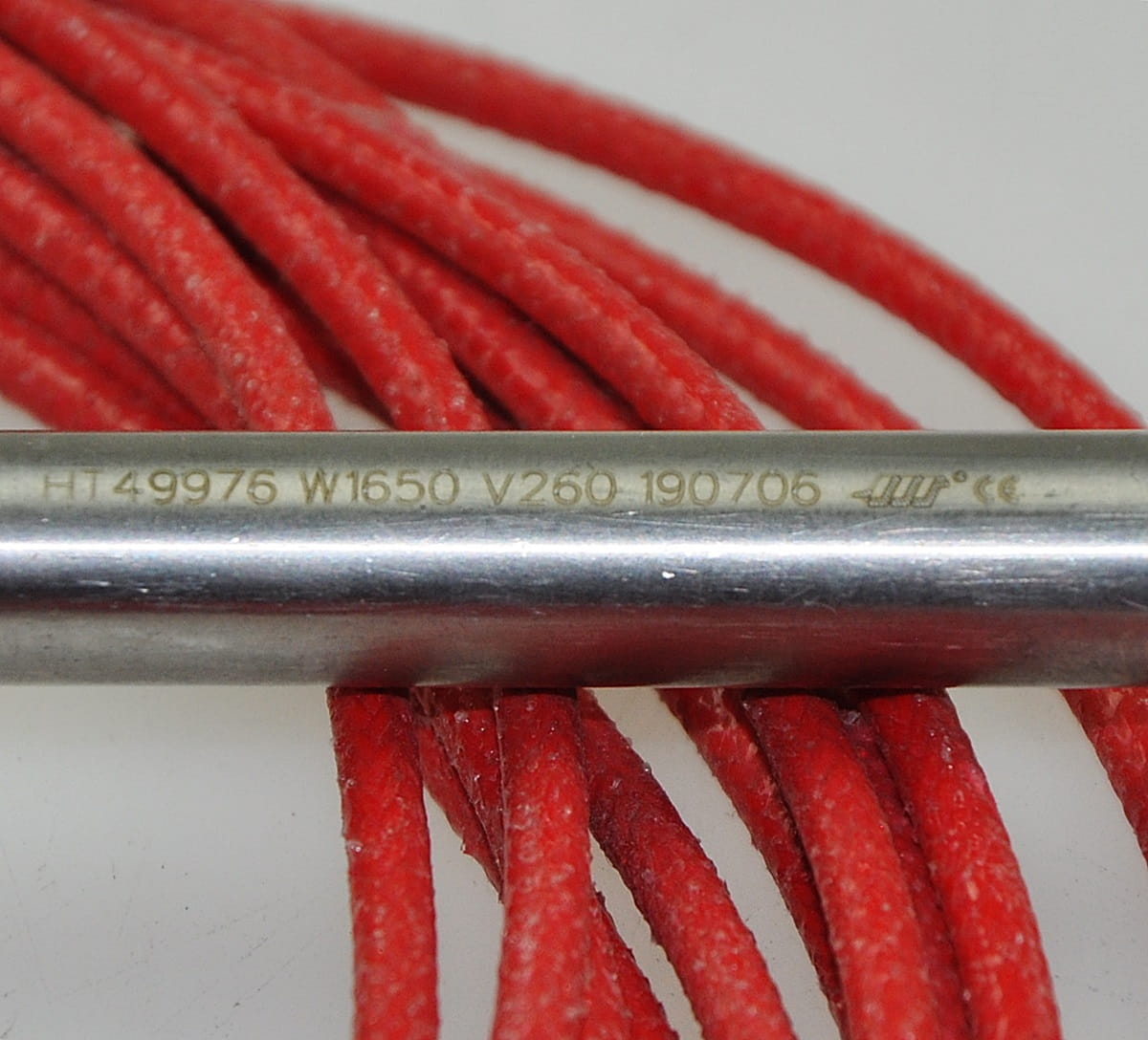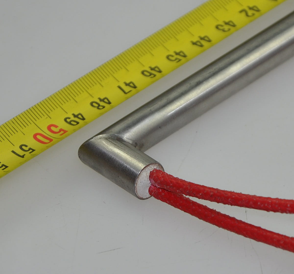 Nowa, nigdy nie używana, bardzo dobrej jakości grzałka patronowa o długości 500mm i średnicy 12mm. Moc 1650W, napięcie zasilania 260V. Symbol grzałki: HT49976 W1650 V260. Grzałki były przeznaczone do podgrzewania elementów wtryskarki tworzyw sztucznych.