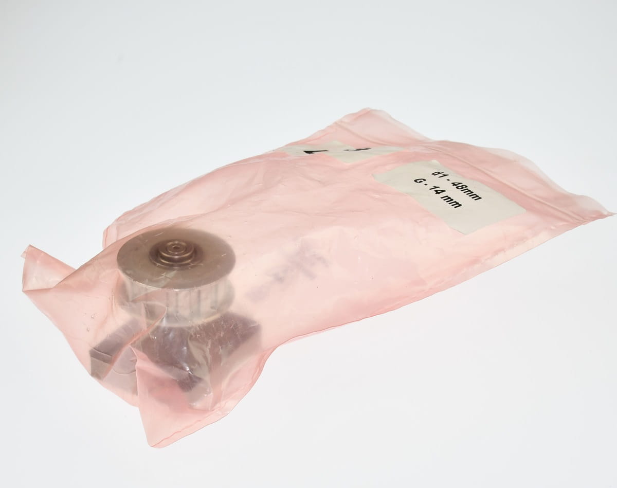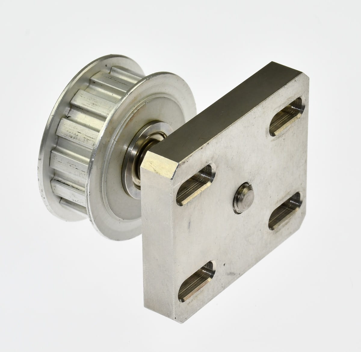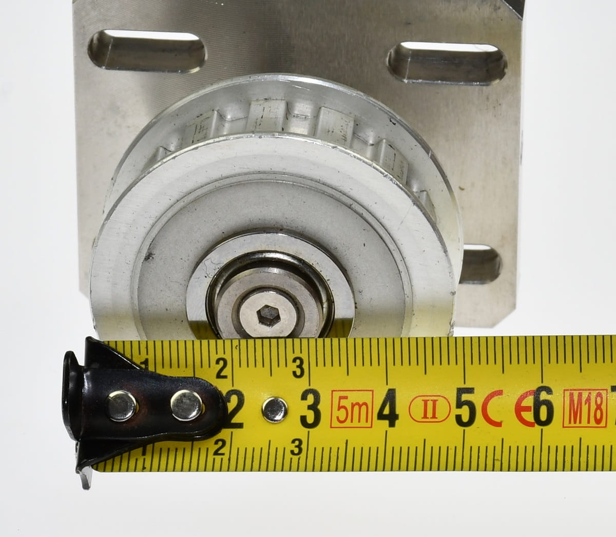 Nie używane Koło pasowe L 3/8 cala 48mm firmy Misumi z osią obrotową i mocowaniem, pochodzi z likwidowanych zasobów magazynu utrzymania ruchu.