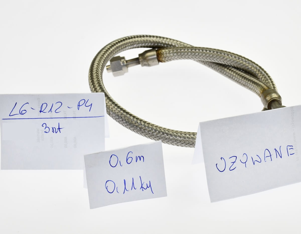 Używany, całkowicie sprawny Zbrojony wąż ciśnieniowy o oznaczeniu: LET-LOK 316.1/4.XB1 marki HAM-LET. Długość 60cm. Uszczelnienie stożkowe, wykonanie złączy ze stali kwasoodpornej 316L o rozmiarze 1/4 cal. Pochodzi z demontażu instalacji technologicznych wysokiego ciśnienia.