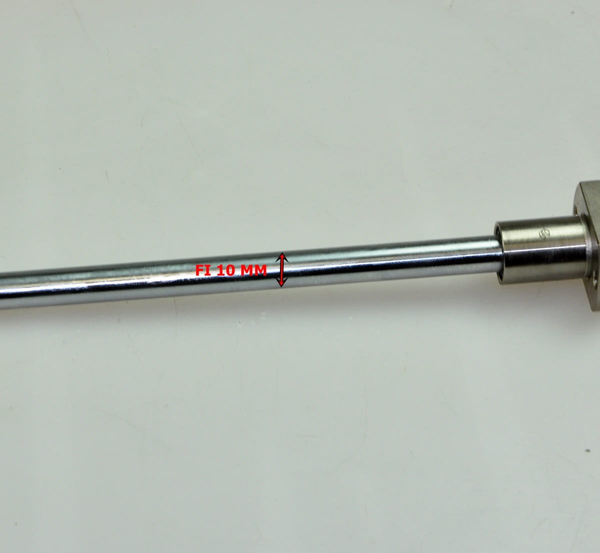 Używany zestaw prowadnicy liniowej składający się z łożyska liniowego o symbolu LHCKM10 firmy Misumi oraz wałka fi 10mm i długości 20cm.