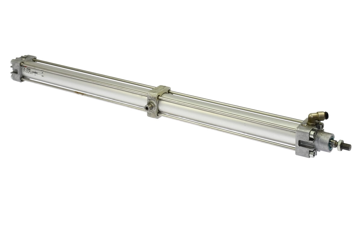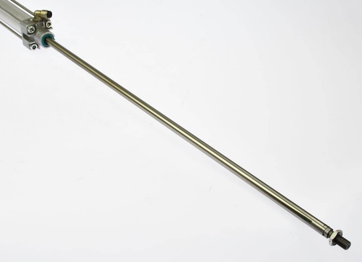 Używany element o symbolu: NA/8032/M/560, produkt firmy NORGREN. Siłownik pneumatyczny obustronnego działania, pochodzi ze sprawnej maszyny do produkcji elektroniki, likwidowanej z powodu modernizacji. Średnica tłoka 32mm, skok 560mm.