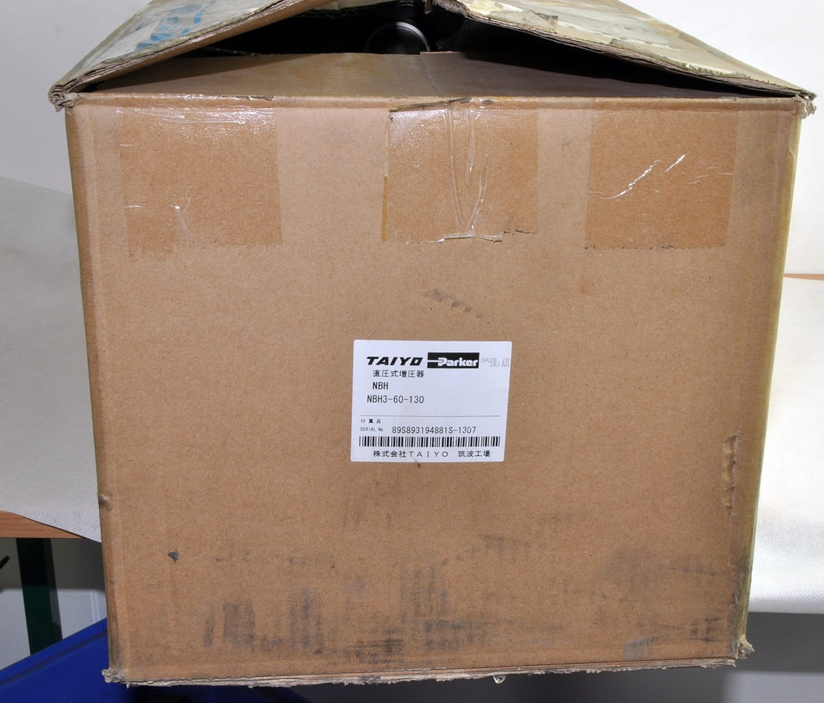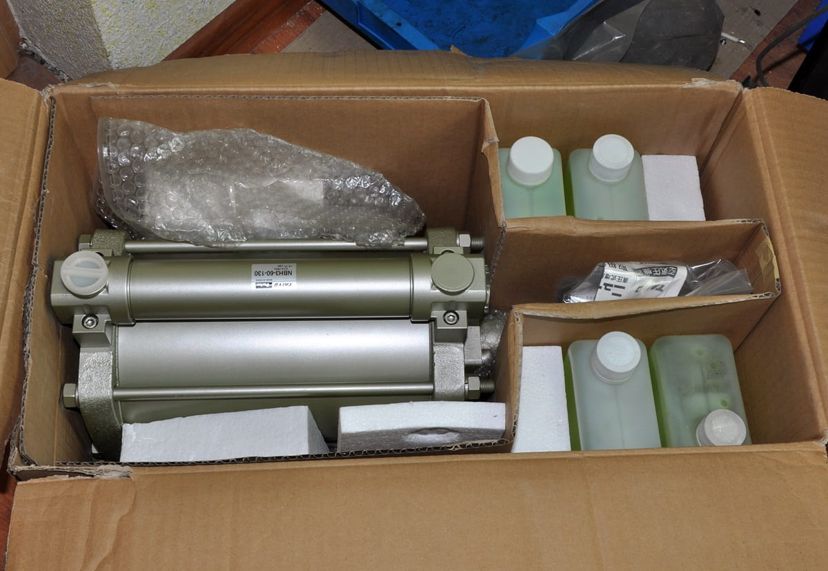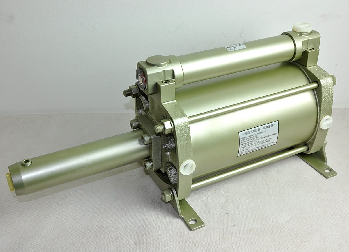 Nowy, nigdy nie używany wzmacniacz ciśnienia oleju zasilany pneumatycznie. Symbol produktu: NBH3-6-130, produkt renomowanej firmy PARKER. Jest to urządzenie które zasilane sprężonym powietrzem pompuje olej z maksymalnym ciśnieniem uzyskiwanym do 17,5 MPa. Pojemność pompy oleju 130cm3. Produkt posiada swoje oryginalne opakowanie z akcesoriami oraz czterema opakowaniami oleju smarującego, wymaganego do poprawnej pracy pompy: NBH-OIL1.