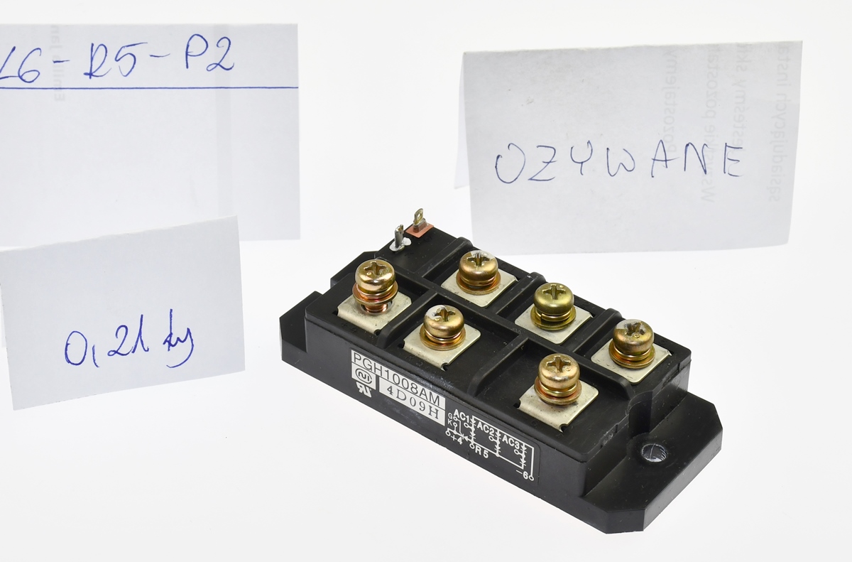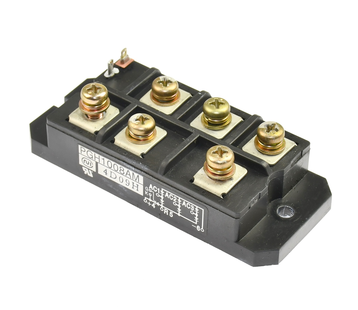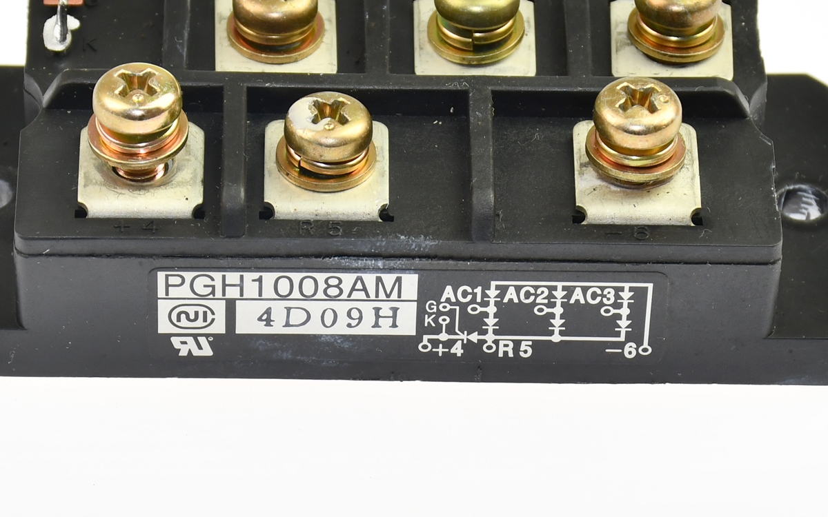 Używany, całkowicie sprawny moduł o oznaczeniu: PGH1008AM, producent: NIHON. Moduł tyrystorowo diodowy dla prądu 100A, napięcie do: 800V. Pochodzi z demontażu całkowicie sprawnych maszyn przemysłowych.