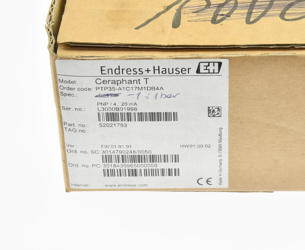 PTP35-A1C17H1DB4A Endress+Hauser Przetwornik ciśnienia -1…1 bar 4-20mA PNP