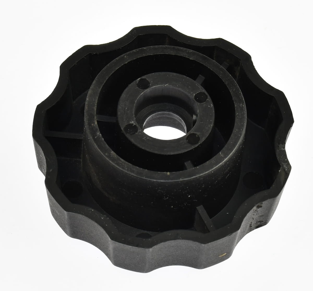 Używane pokrętło autotransformatora. Średnica zewnętrzna 75 mm. Brak tulejek zaciskowych, tylko sama gałka plastikowa. Całość pokazana na załączonych zdjęciach.
