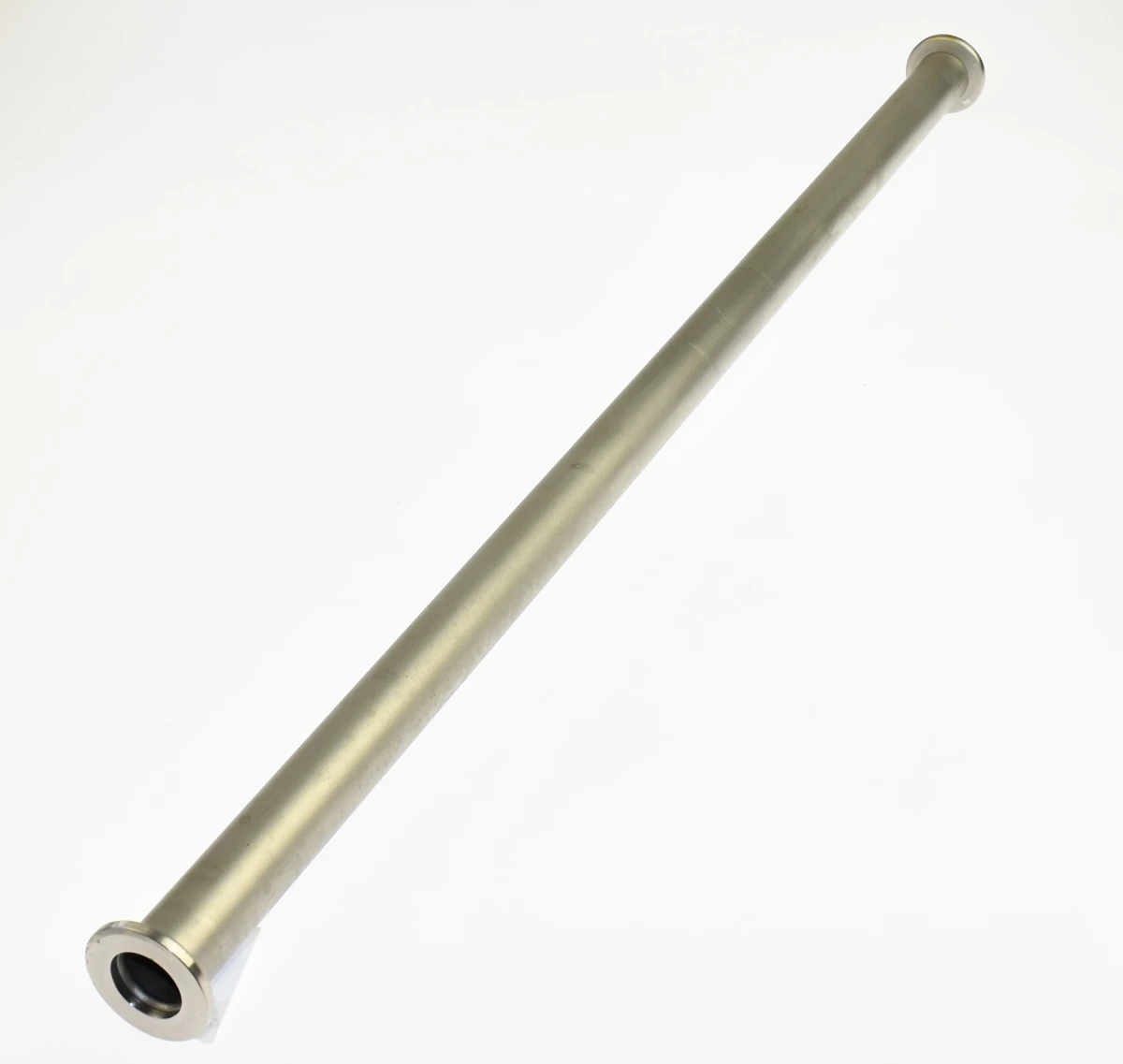 Używana Prostka próżniowa, rura o długości 510mm ze złączami ISO KF16, wykonane ze stali kwasoodpornej 316L. Pochodzi z demontażu całkowicie sprawnych maszyn przemysłowych.