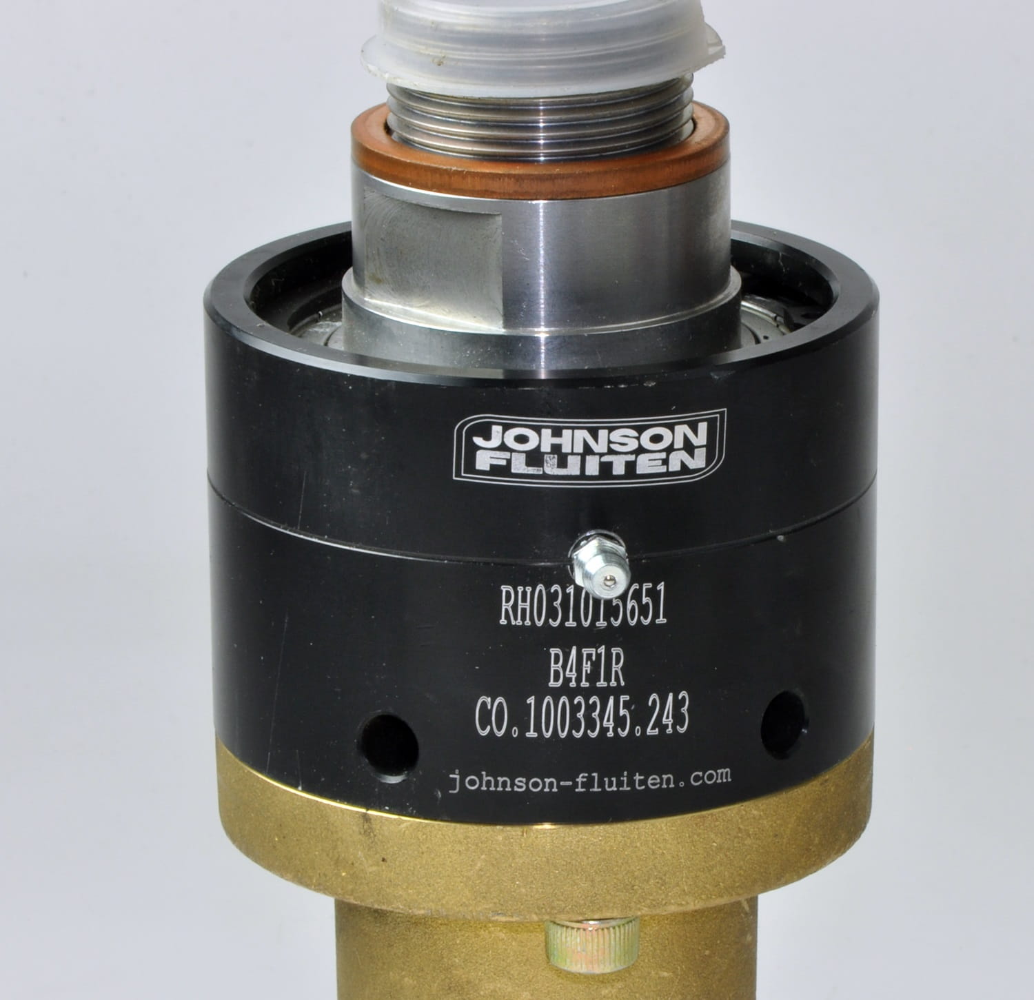 Nowe, nigdy nie używane obrotowe złącze do takich mediów jak woda pod ciśnieniem i para wodna oraz oleje, produkt o symbolu: RH031015651, producent: JOHNSON FLUITEN, temperatura maksymalna mediów 180 st. Celsjusza, maksymalne obroty złącza 2000 RPM.
