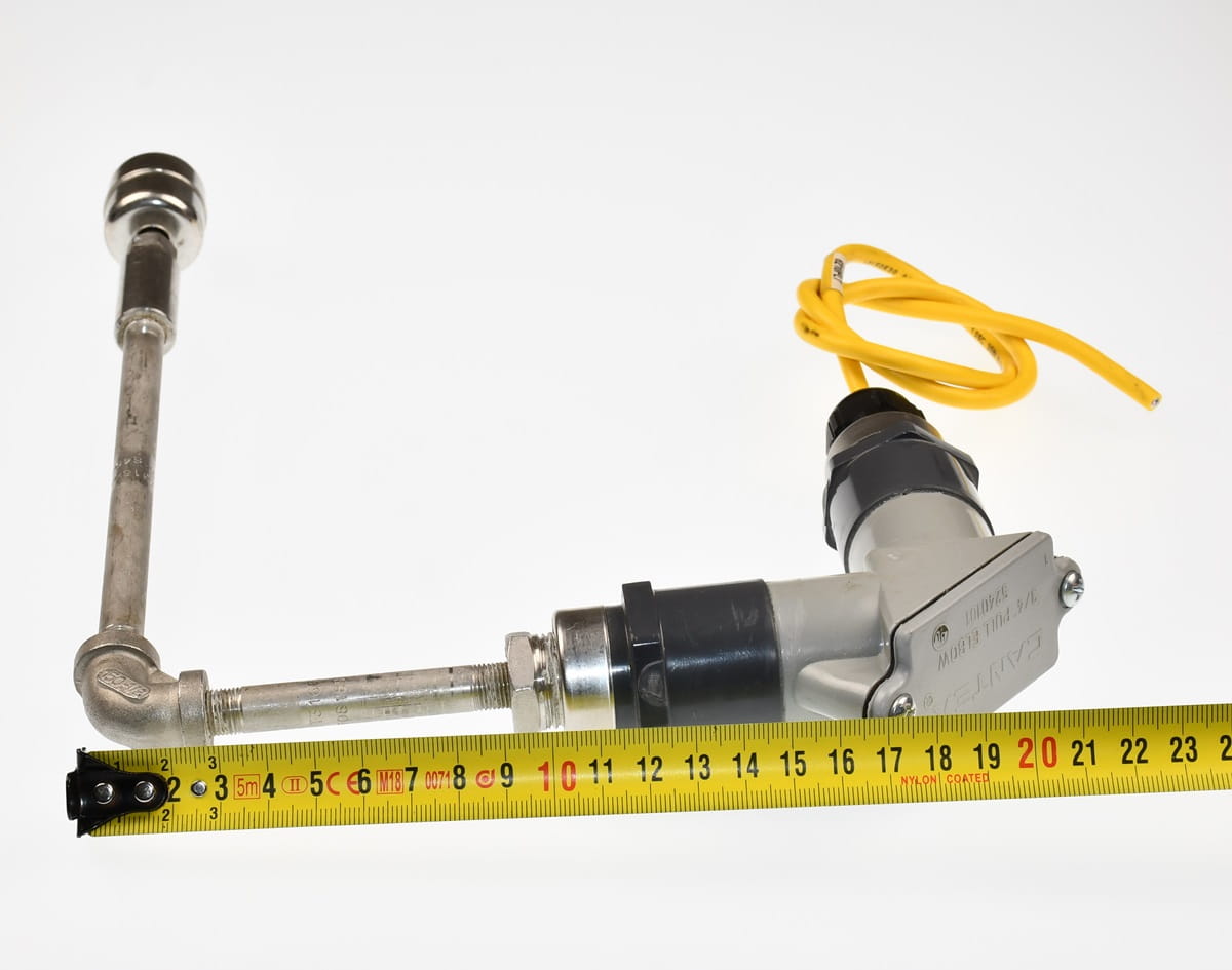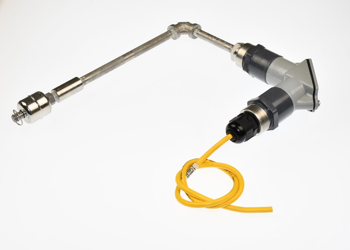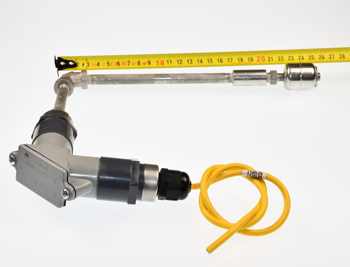 Używany, całkowicie sprawny element o oznaczeniu: SA182F304/L CANTEX. Pływakowy czujnik poziomu cieczy. Pochodzi z demontażu przemysłowego systemu chłodzenia cieczą.