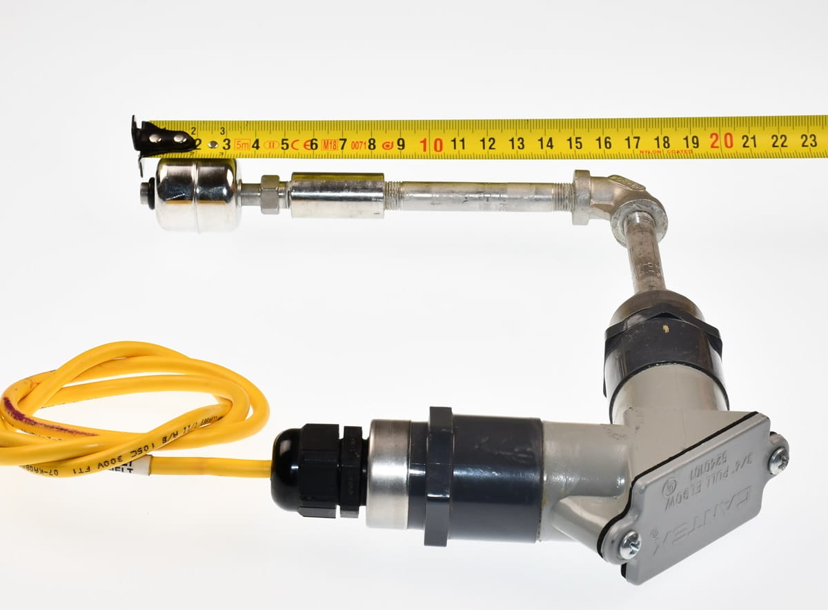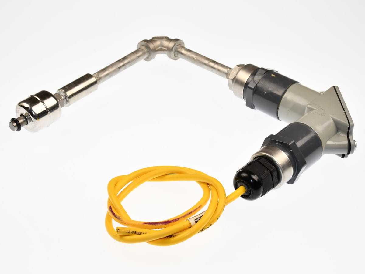 Używany, całkowicie sprawny element o oznaczeniu: SA182F304/L CANTEX. Pływakowy czujnik poziomu cieczy. Pochodzi z demontażu przemysłowego systemu chłodzenia cieczą.