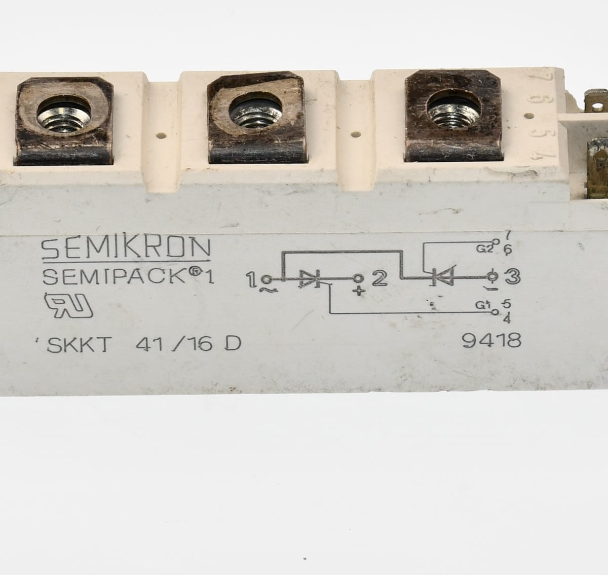 Używany, całkowicie sprawny podwójny moduł tyrystorowy renomowanej firmy SEMIKRON o symbolu: SKKT 41/16 D