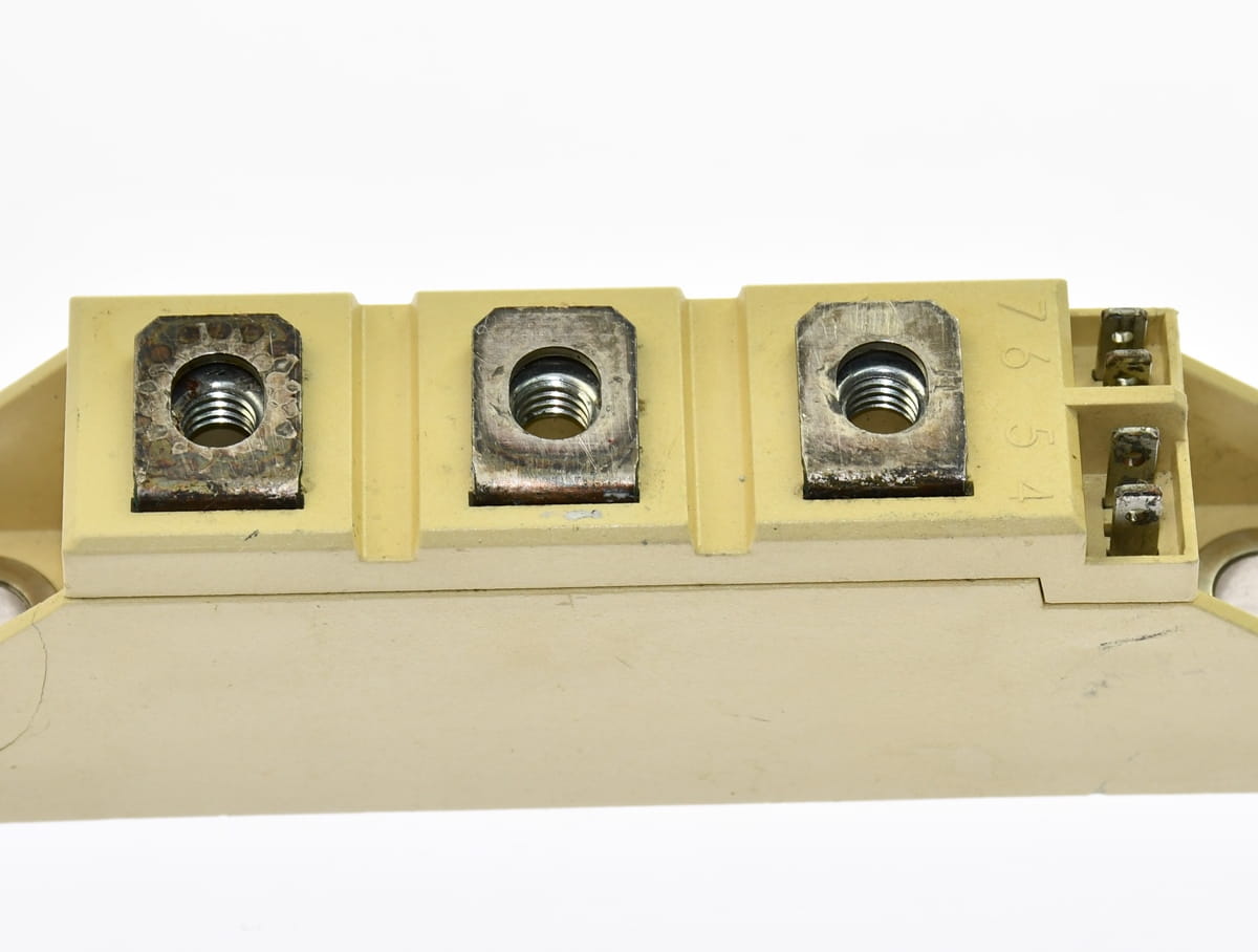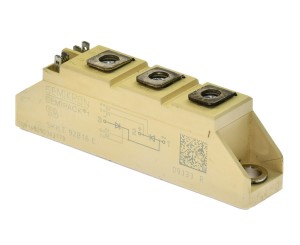 Używany, całkowicie sprawny podwójny moduł tyrystorowy renomowanej firmy SEMIKRON o symbolu: SKKT 92B16E. Pochodzi z demontażu całkowicie sprawnych urządzeń przemysłowych.