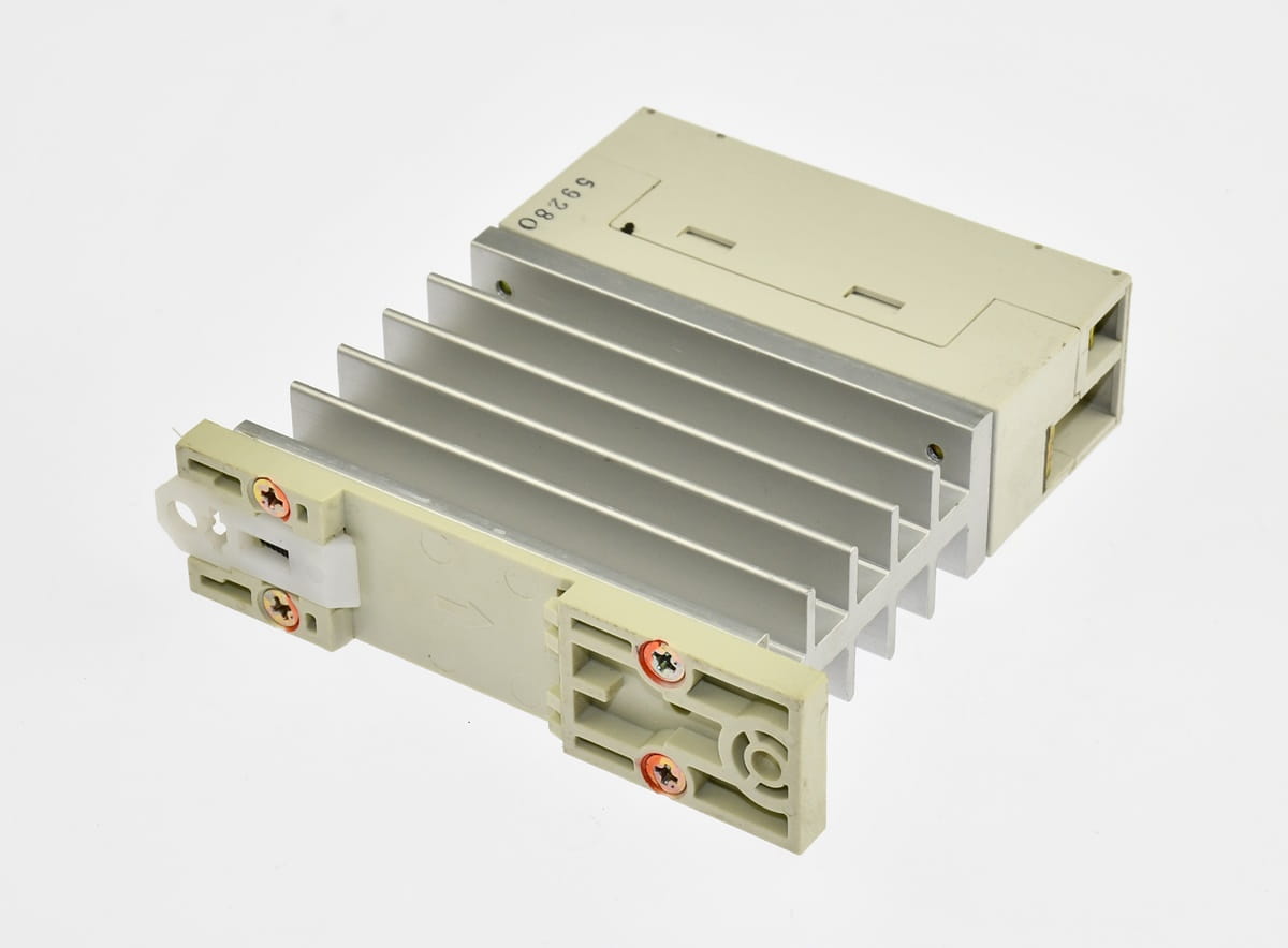Używany, całkowicie sprawny i w idealnym stanie stycznik półprzewodnikowy SSR ze zintegrowanym radiatorem i metalowym uchwytem do szyny DIN. Produkt renomowanej firmy Fuji Electric, symbol producenta: SS101-3Z-D3. Stosowane były do precyzyjnego zasilania paneli grzejnych na podczerwień dla utrzymania temperatury z bardzo dużą dokładnością. Napięcie sterowania DC w zakresie 5 - 24V.